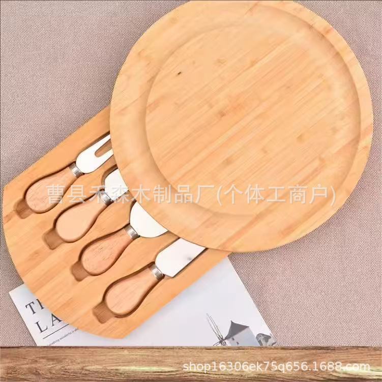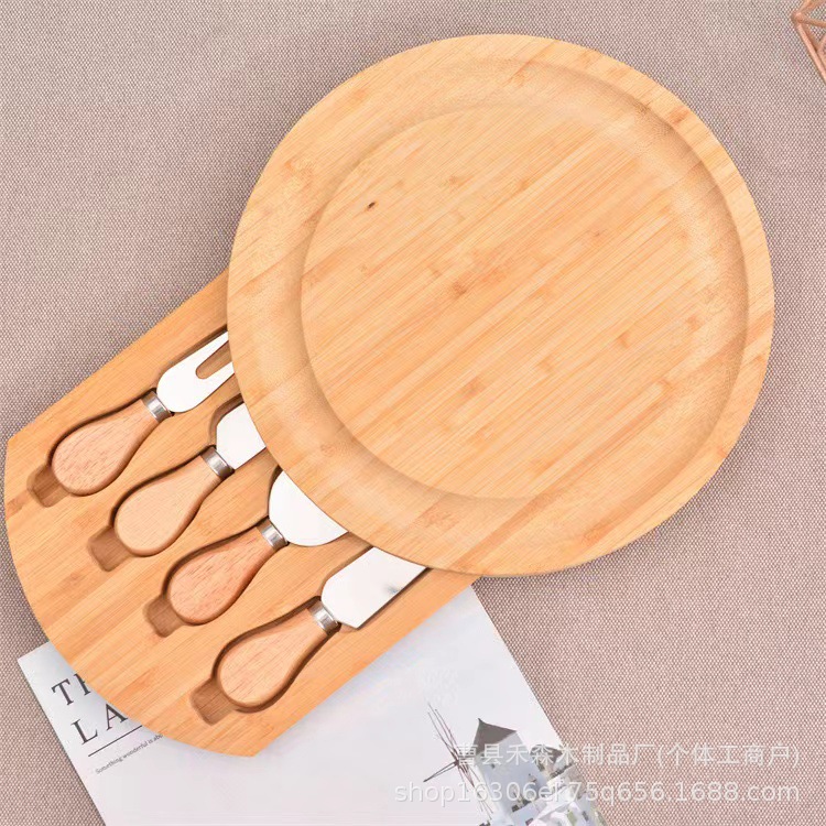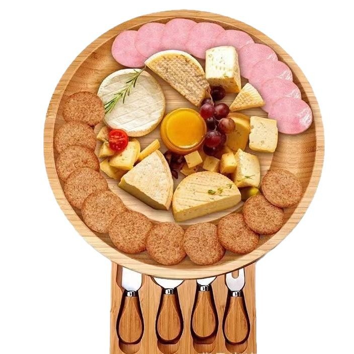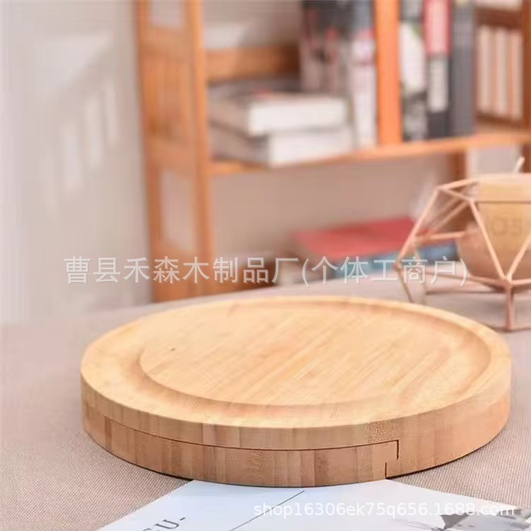 Набор бамбуковых разделочных досок с выдвижным ящиком, доска для пиццы, деревянная круглая разделочная доска, тарелка для хлеба, закусок, западной еды