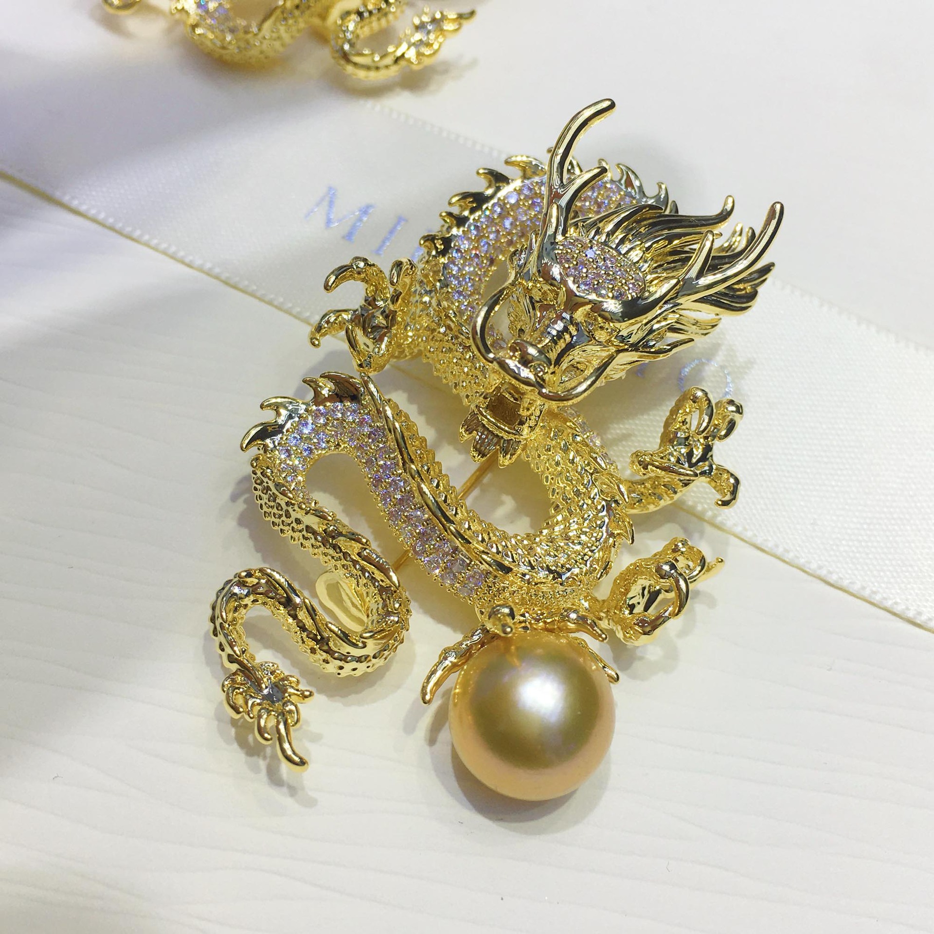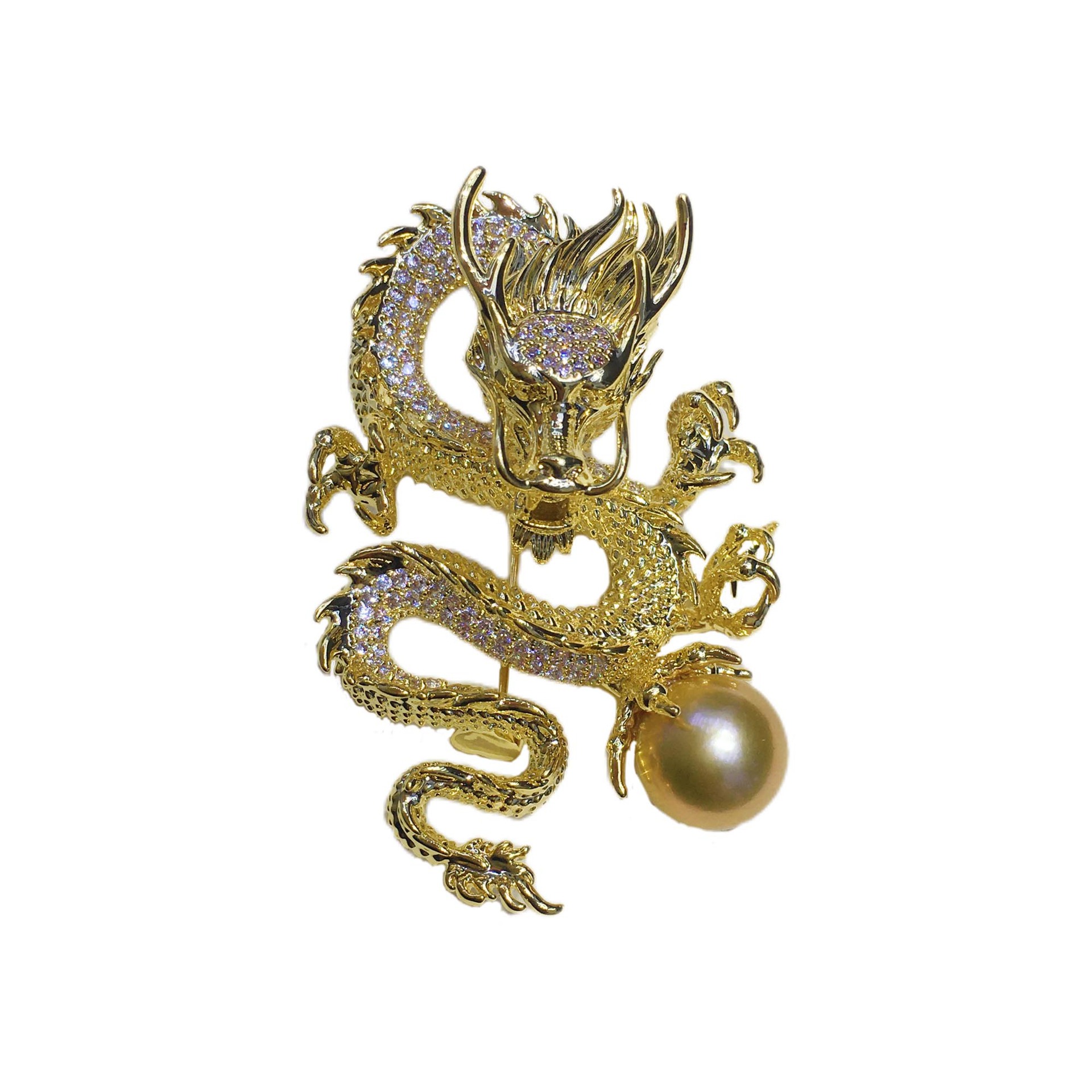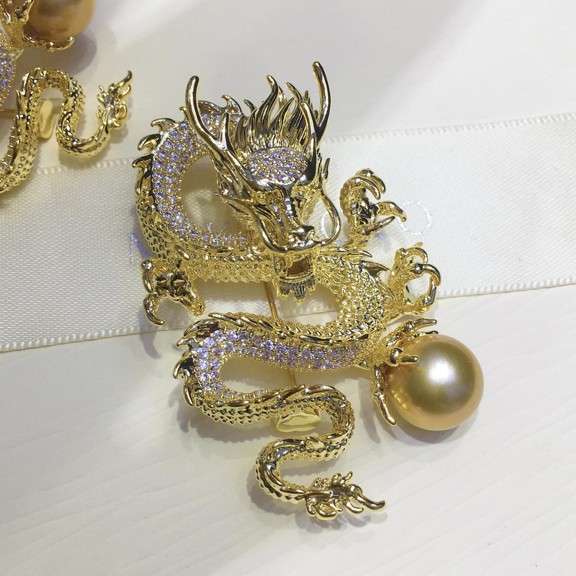Брошь в китайском стиле с пресноводным золотым жемчугом в виде знака зодиака — Дракона, для года рождения, унисекс, брошь для костюма, элегантное украшение для груди.