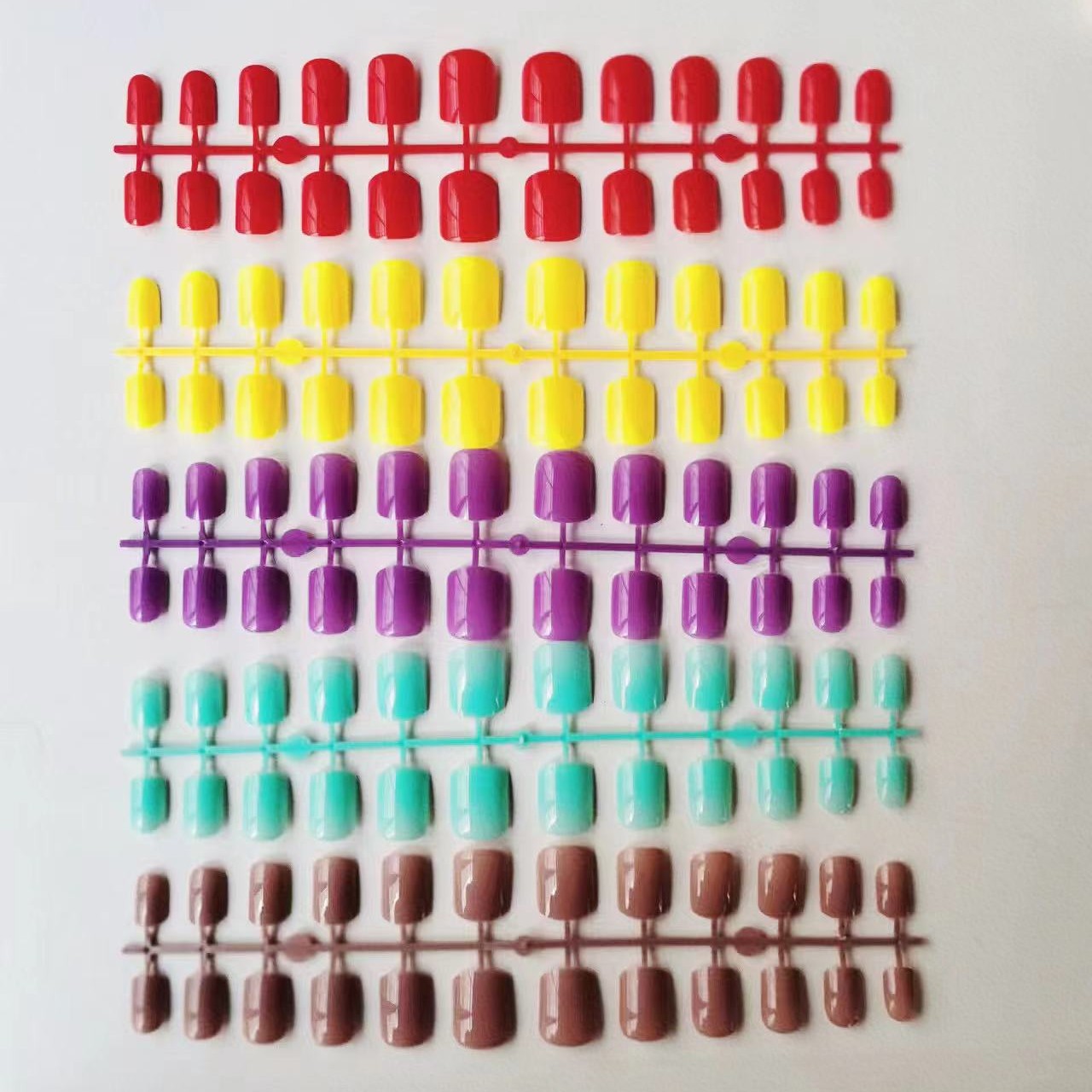 Прямые поставки с фабрики: разноцветные короткие квадратные и круглые накладные ногти с масляным покрытием, 24 штуки, полное покрытие, многоцветные, оптом, короткий стиль, нейл-арт.