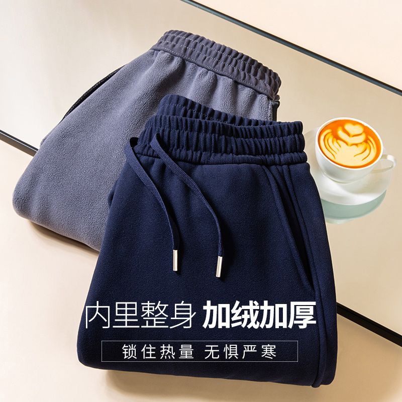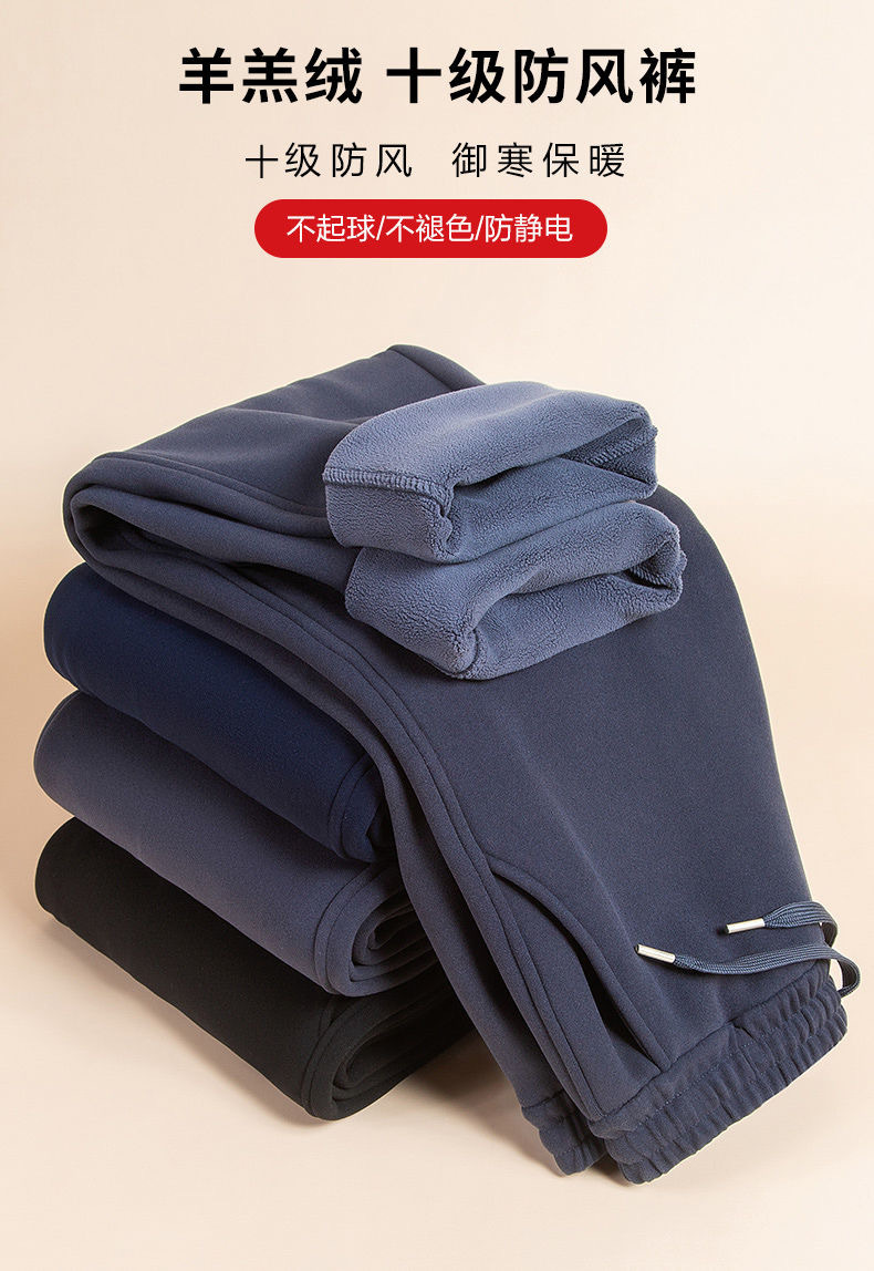 [Lambswool] зимние мужские утолщенные спортивные штаны на флисовой подкладке ветрозащитные штаны теплые хлопковые штаны повседневные штаны спортивные штаны Мужские штаны