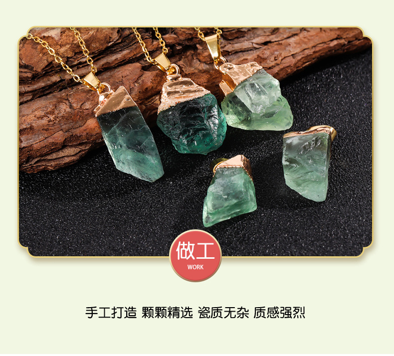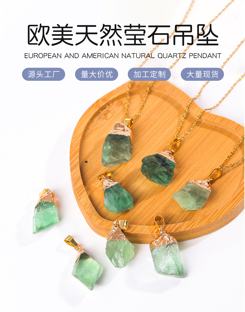 Подвеска из натурального флюорита в европейском и американском стиле, нерегулярный кластер кристаллов флюорита, ожерелье из необработанного камня, ювелирные аксессуары из хрустального гравия, трансграничные