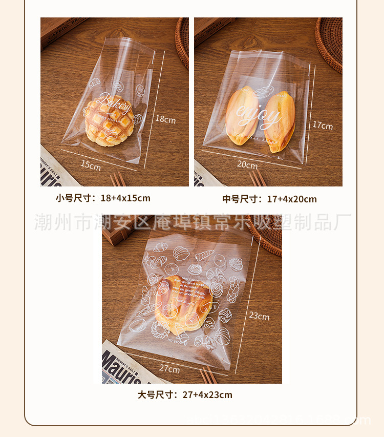 Маленький белый английский мешок для хлеба (No CL-C301); ОПП; Маленький мешок для хлеба Enjoy Life (No CL-C302); OPP; Маленький хлебный английский мешок для хлеба (No CL-C303); ОПП; Средний белый английский мешок для хлеба (No CL-B301); ОПП; Мешок для хлеба Medium Enjoy Life (No CL-B302); OPP; Большой белый английский мешок для хлеба (No CL-A301); OPP; Небольшой прозрачный самозапечатывающийся мешок для хлеба без печати; ОПП; Средний прозрачный самозапечатывающийся мешок для хлеба без печати; ОПП; Большой прозрачный самозапечатывающийся мешок для хлеба без печати; ОПП