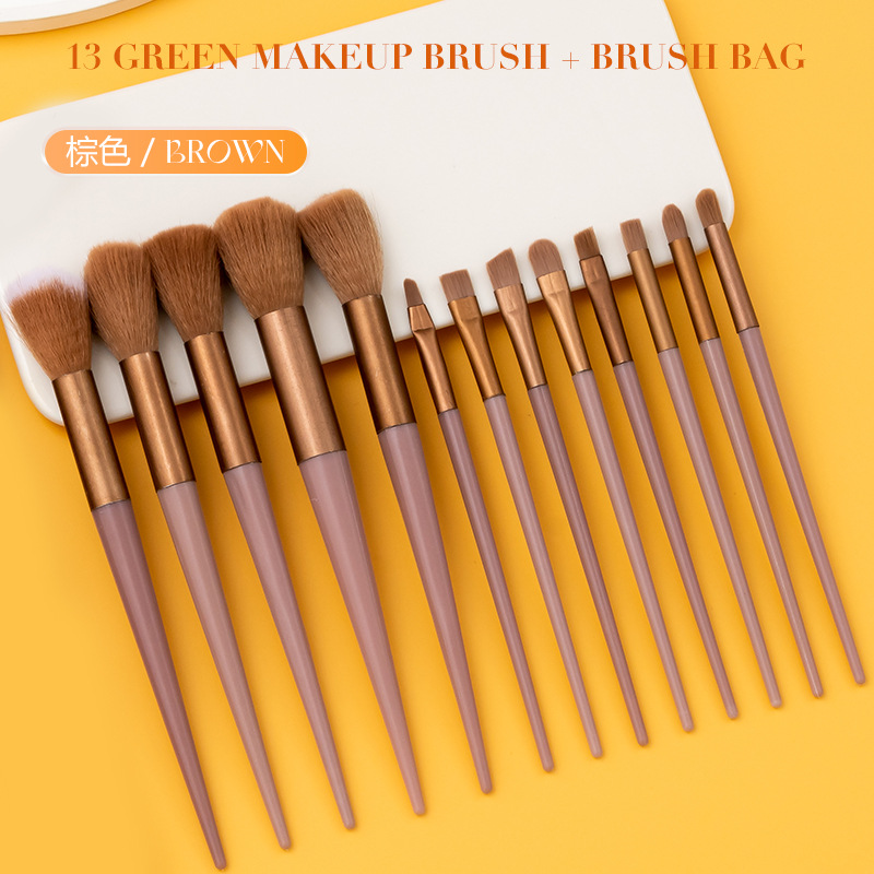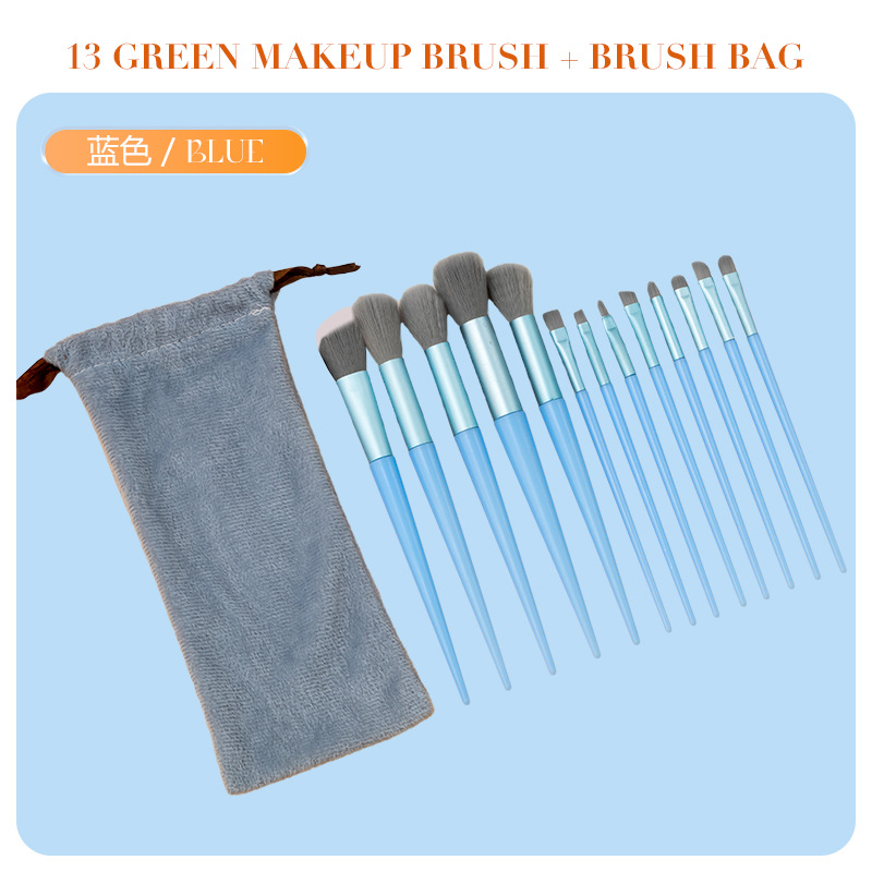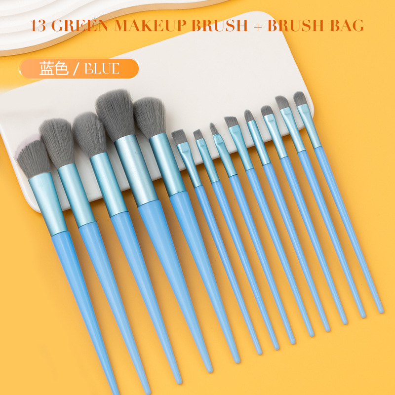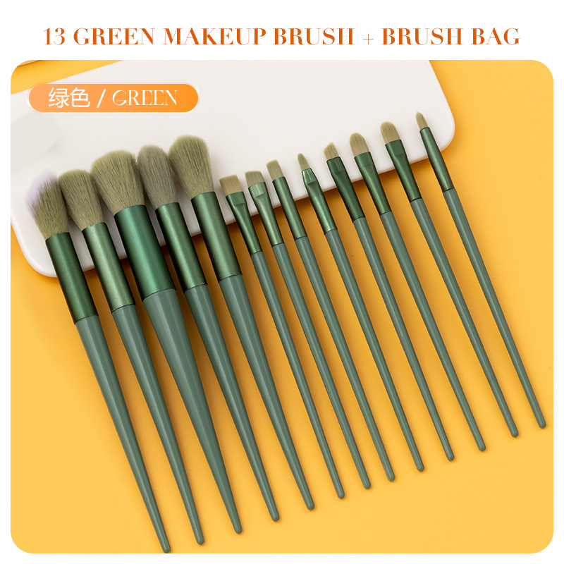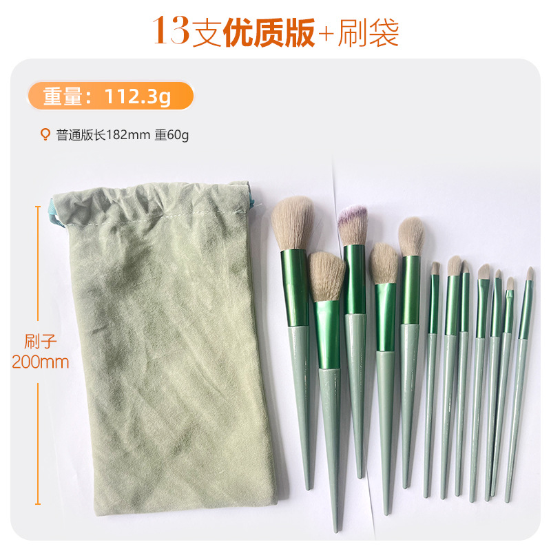 В наличии: Набор кистей для макияжа Four Seasons Green из 13 предметов, трансграничная маркировка, кисть для хайлайтера, кисть для румян, кисть для теней, полный комплект косметических инструментов.