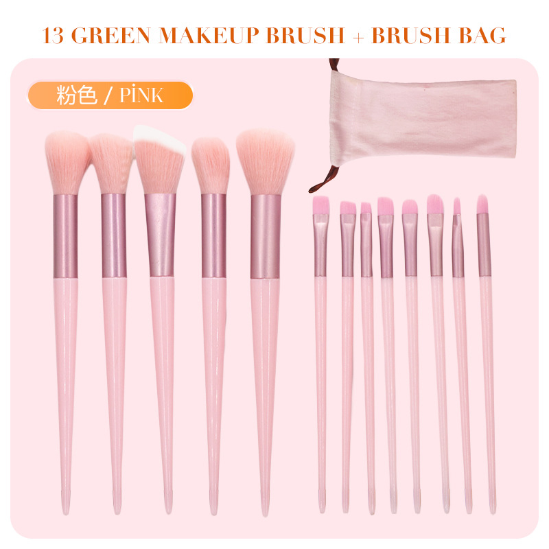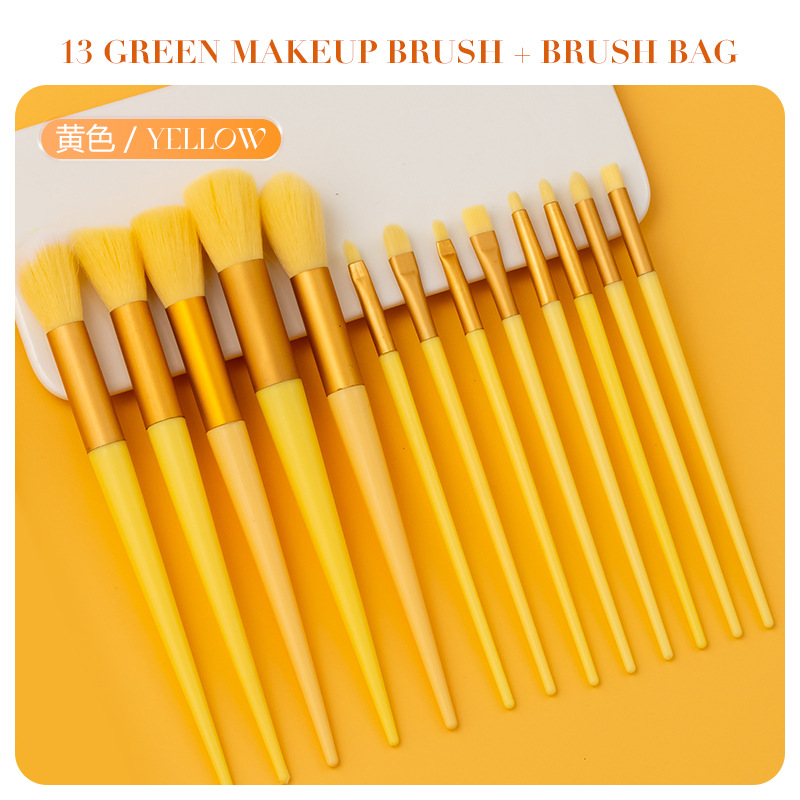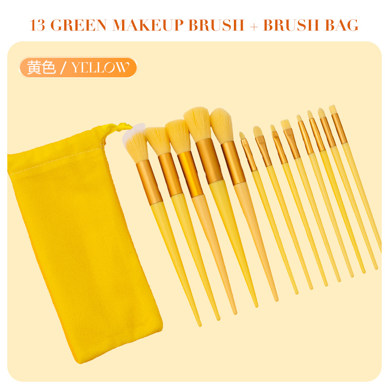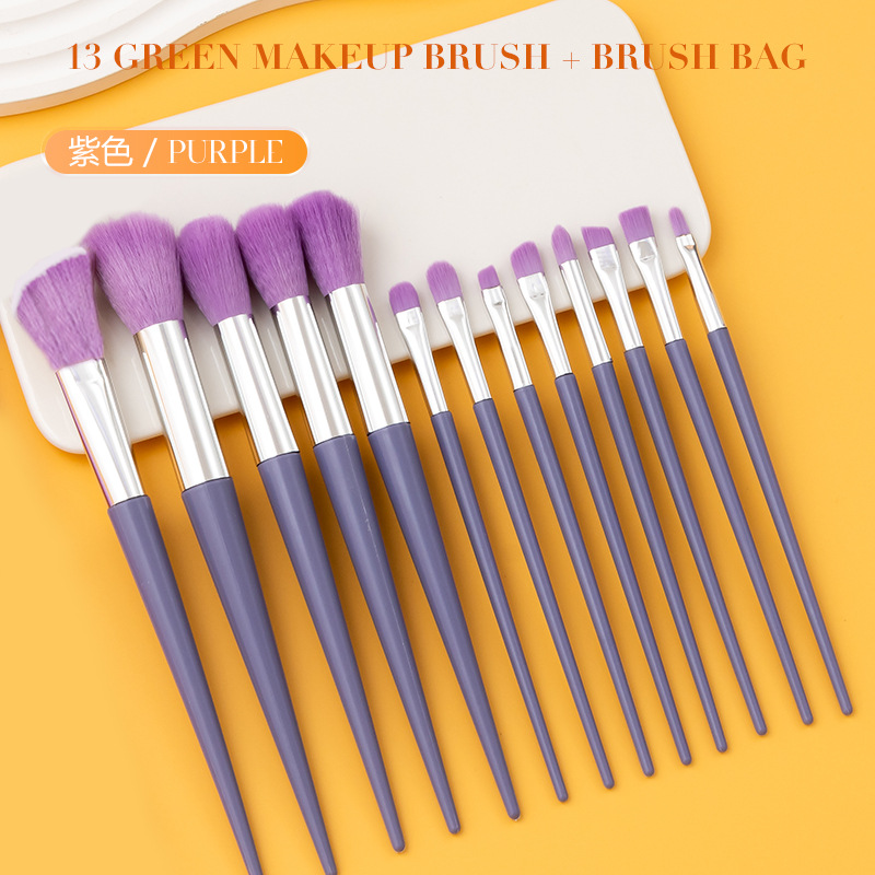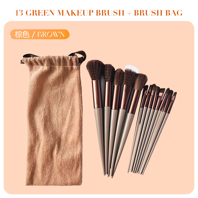 В наличии: Набор кистей для макияжа Four Seasons Green из 13 предметов, трансграничная маркировка, кисть для хайлайтера, кисть для румян, кисть для теней, полный комплект косметических инструментов.
