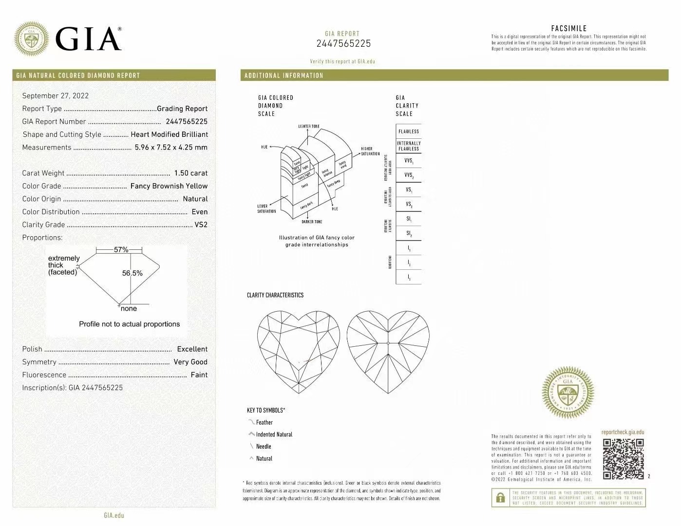 Голый бриллиант среднего цвета в форме сердца длиной 1,5 карата.