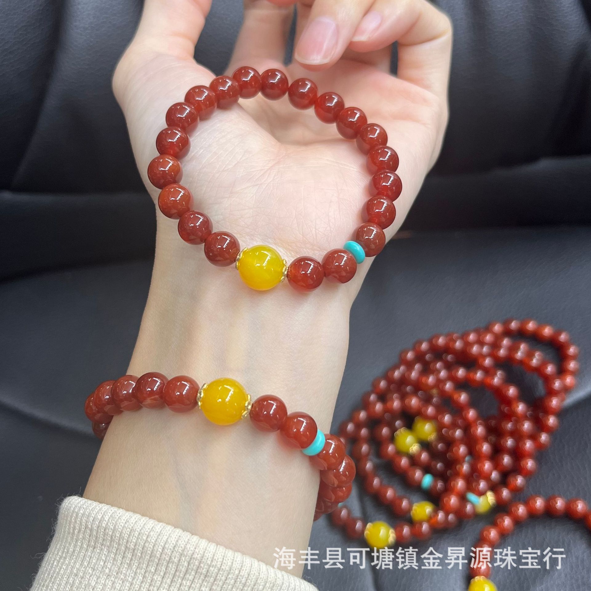 天然红色玛瑙手链南红手串搭配黄玛瑙绿松时尚新年礼物直播福利款 批发量越大价格越低,可供直播间长期合作,欢迎来电私聊