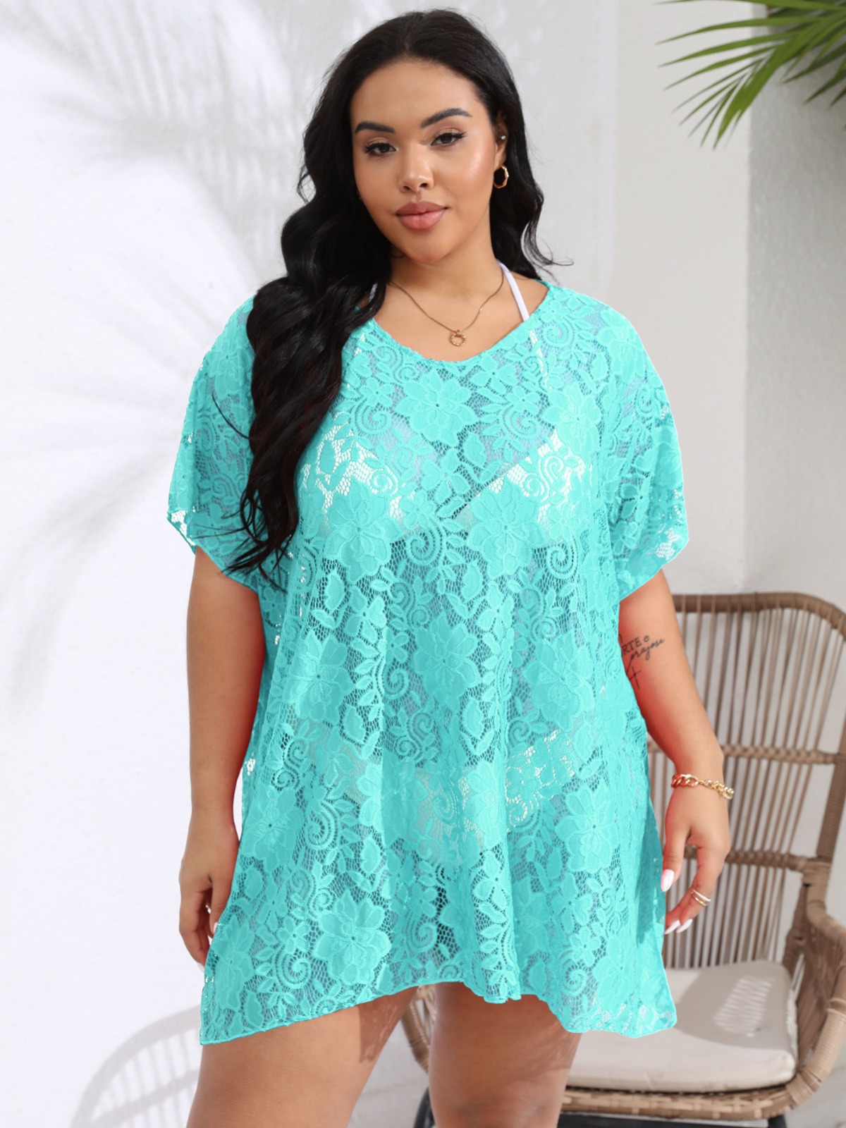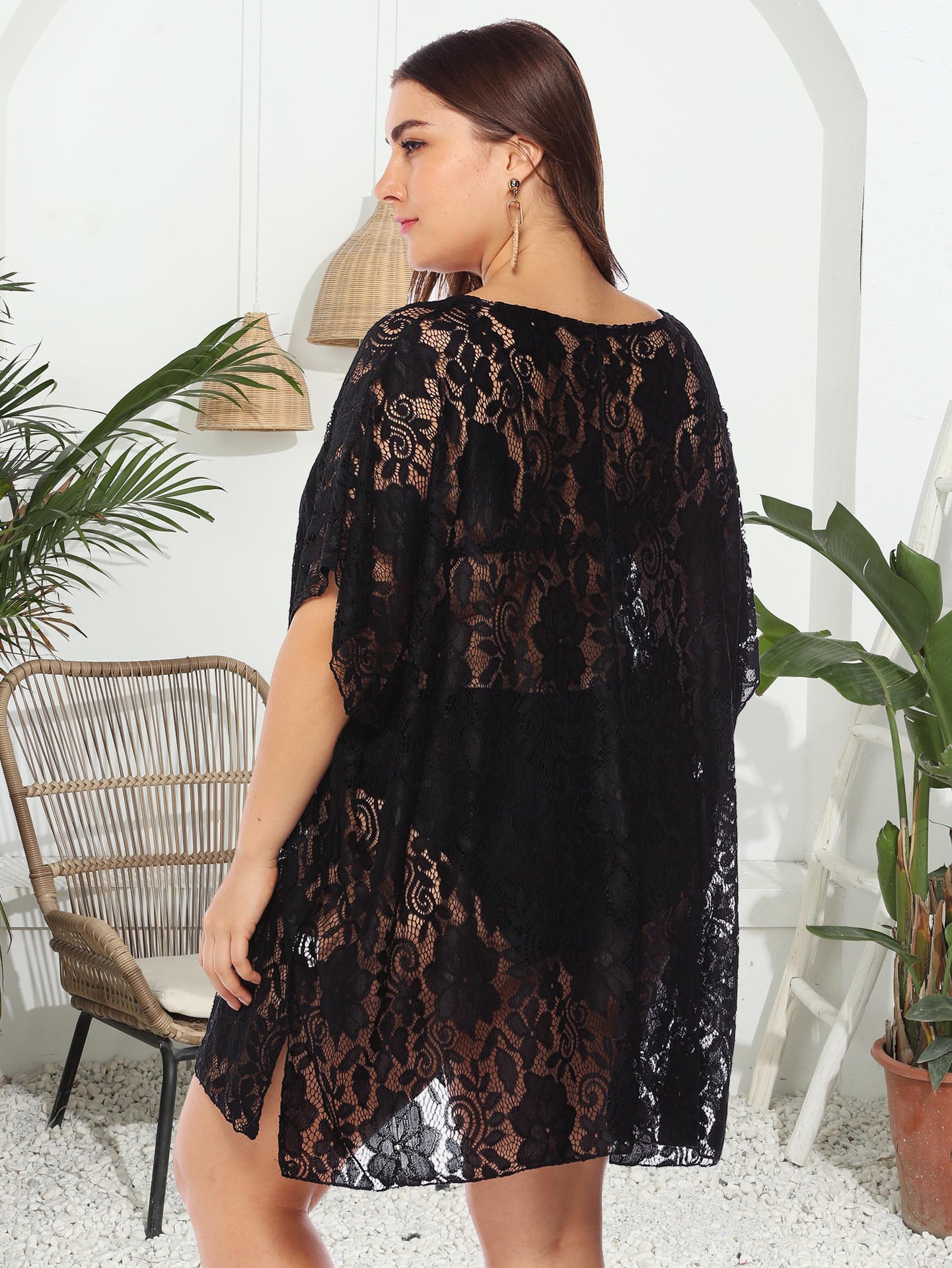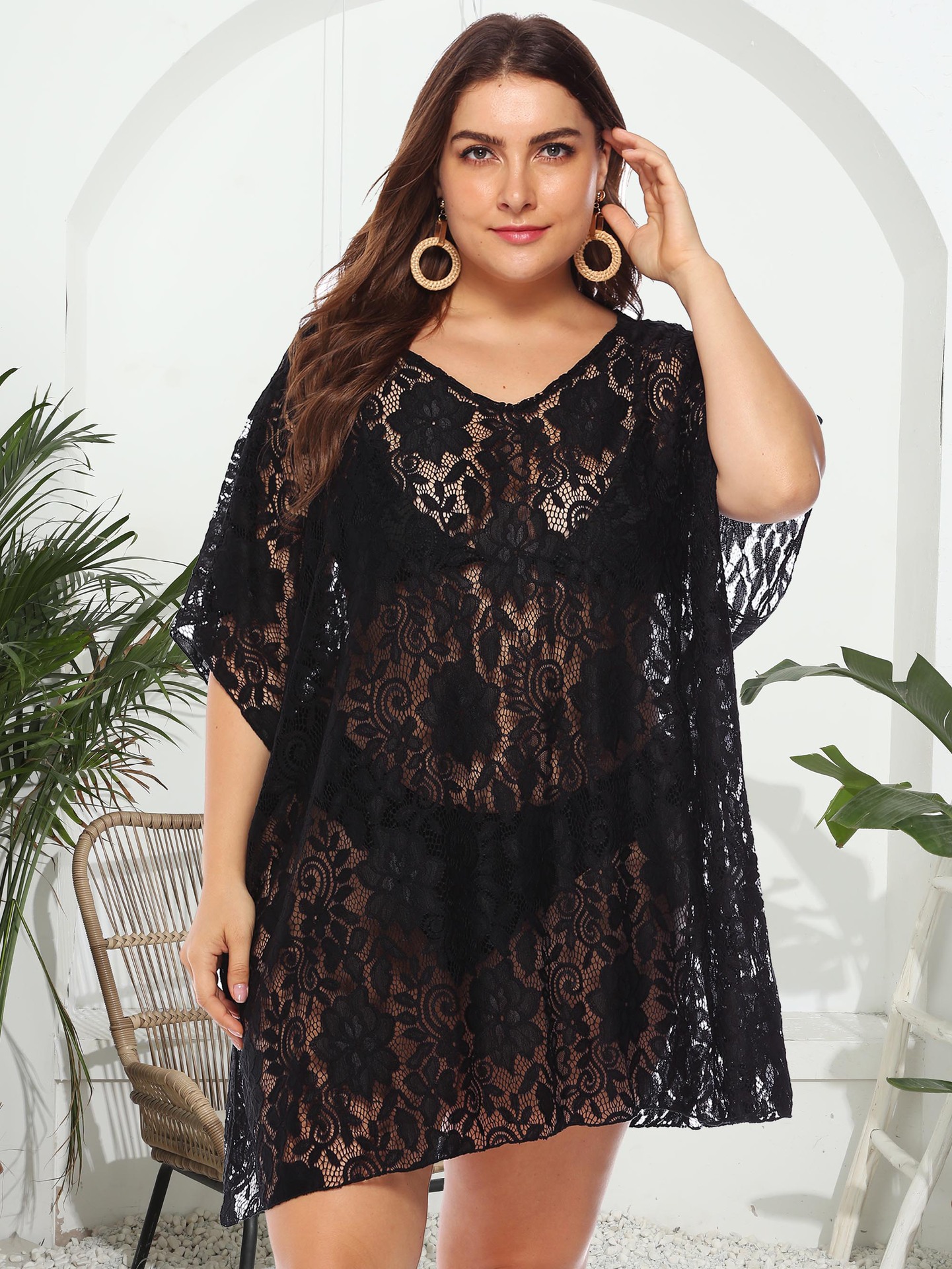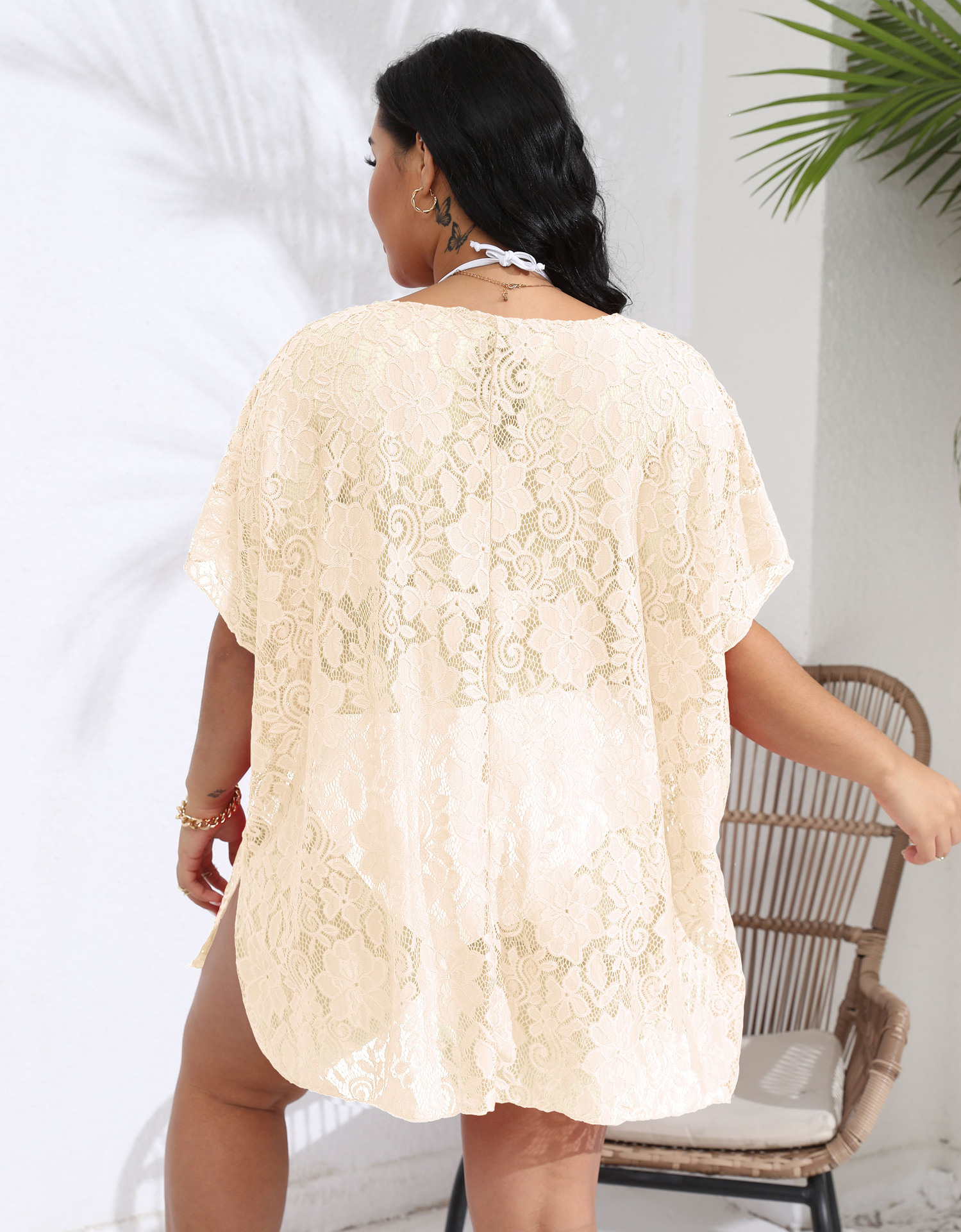 Европейское и американское трансграничное женское сексуальное кружевное ажурное пляжное платье больших размеров, блузка с разрезом и V-образным вырезом, F19140