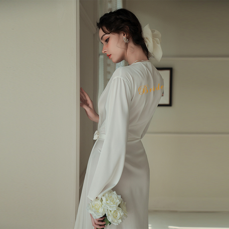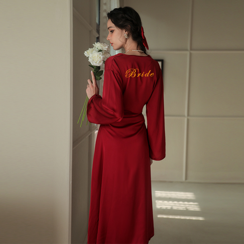 Невесты утреннее платье женский красный ночная рубашка свадебный макияж подружки невесты Группа свадьбы кимоно атласный длинный халат
