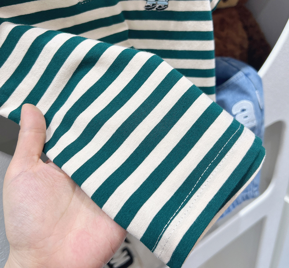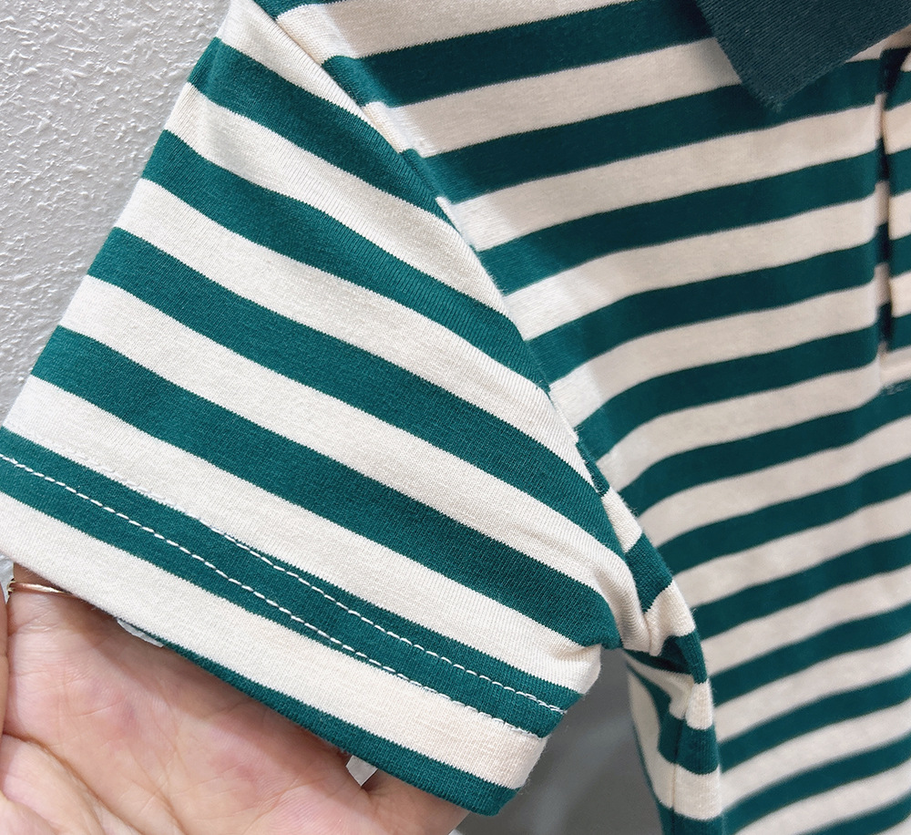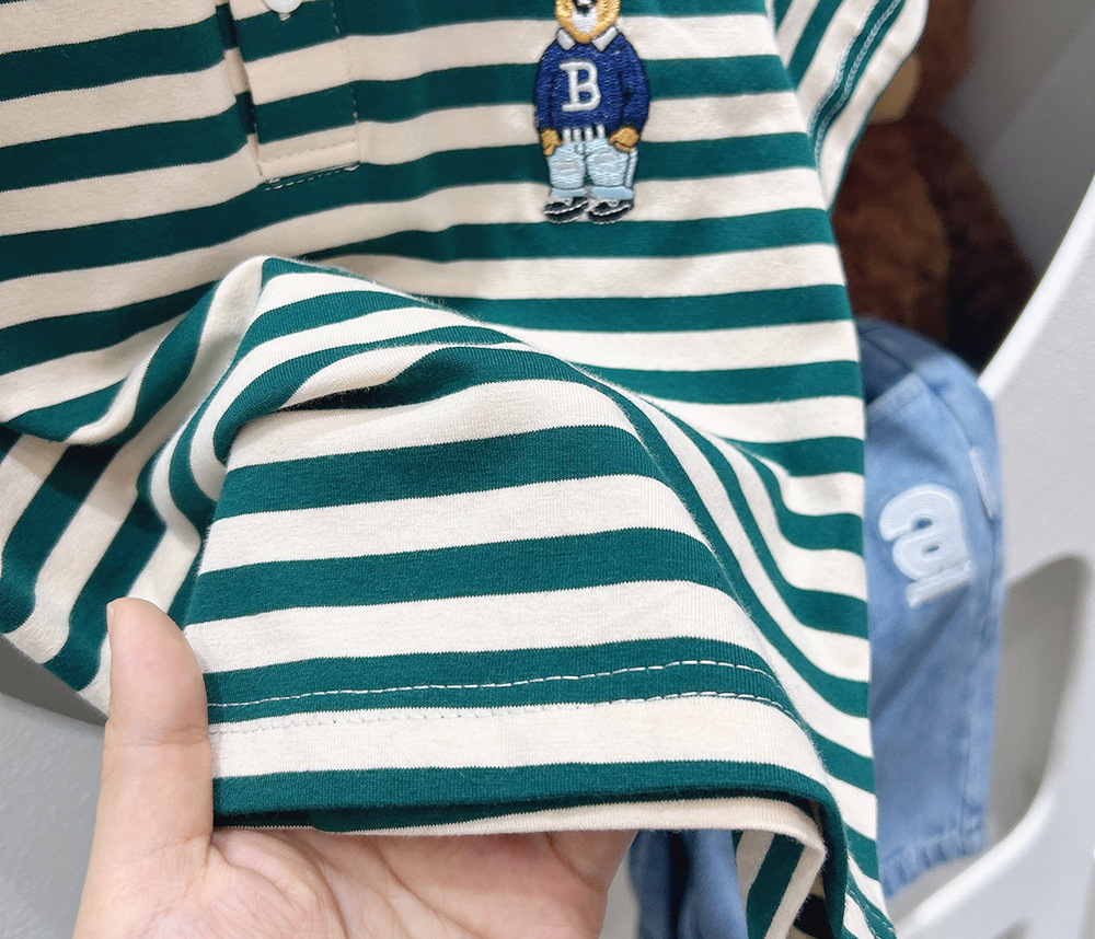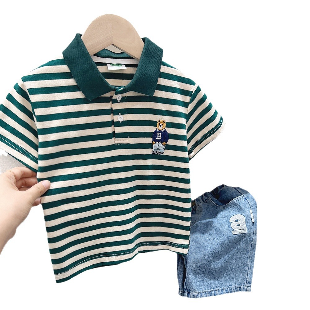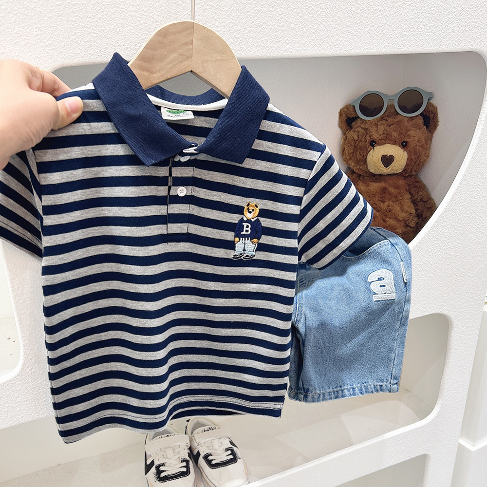 Футболка с короткими рукавами для мальчиков, рубашка-поло, новинка 2024 года, детская одежда в полоску для детей среднего и большого размера, летняя одежда в западном стиле, детский летний топ