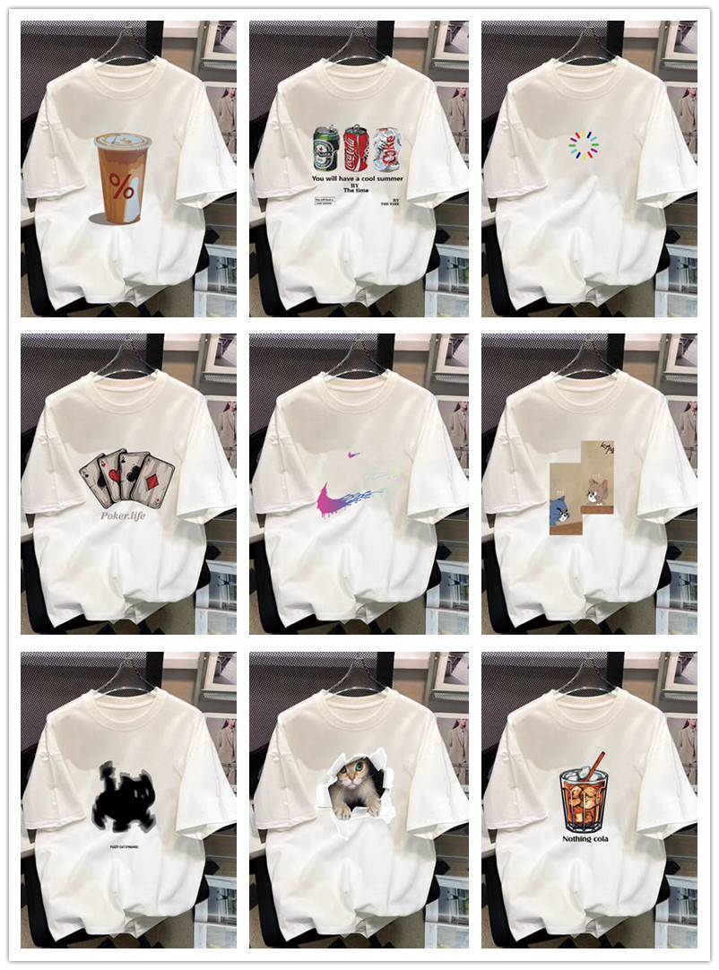 Прилив красного цвета хлопчатобумажная футболка 2024 новый мужской свободный большой размер с круглым вырезом с принтом спортивный нижний топ T