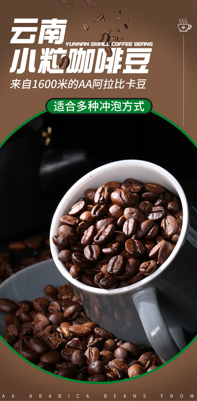 Кофе в зернах от Yunnan Agricultural Science для американо, эспрессо и кафе, свежемолотый, средней темной обжарки, оптом, с насыщенным ароматом.