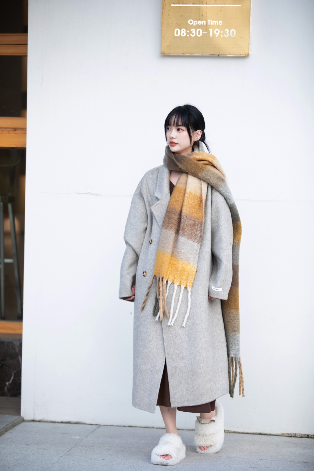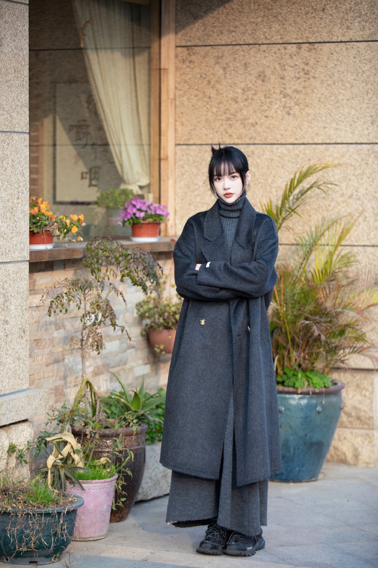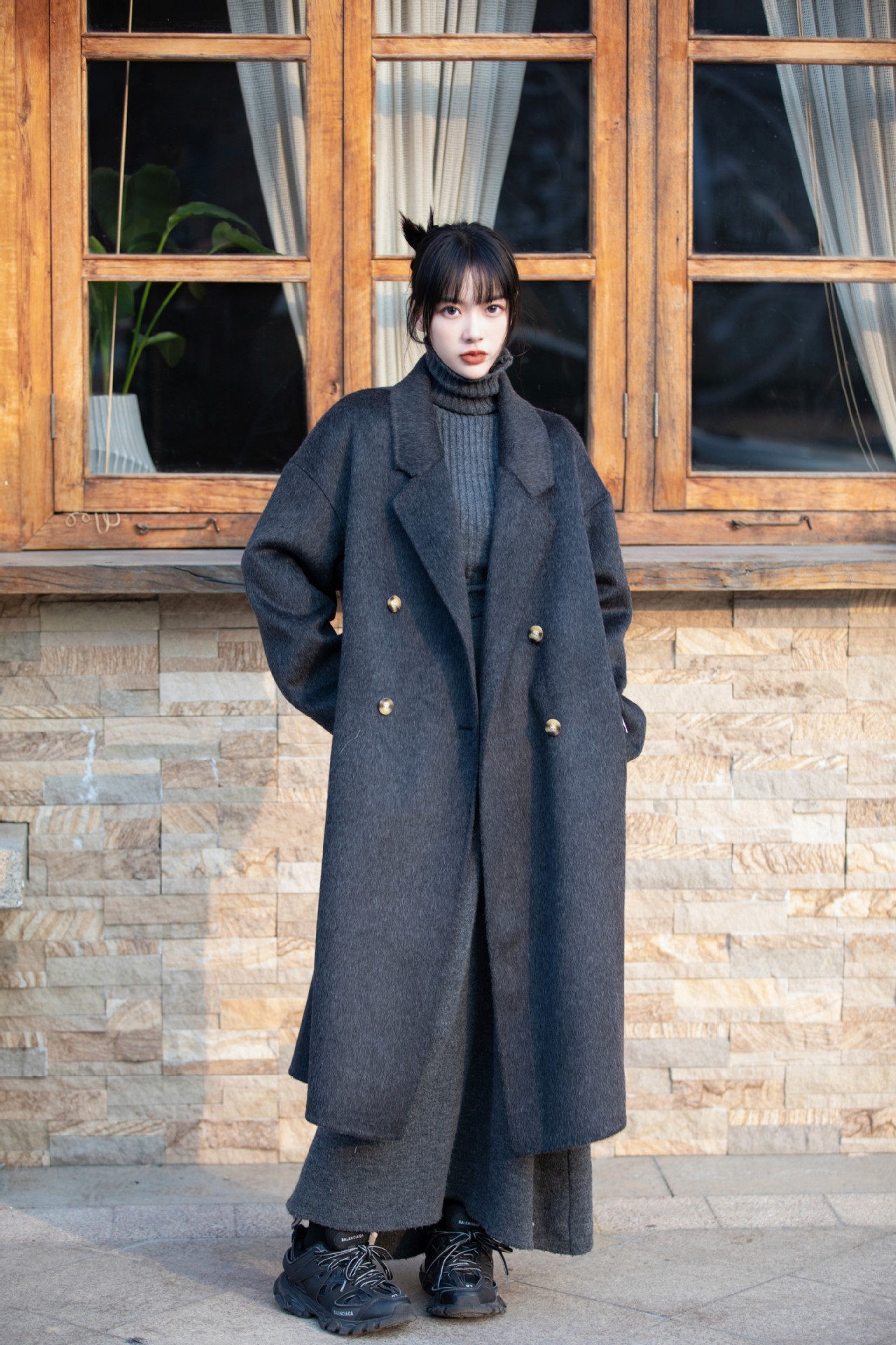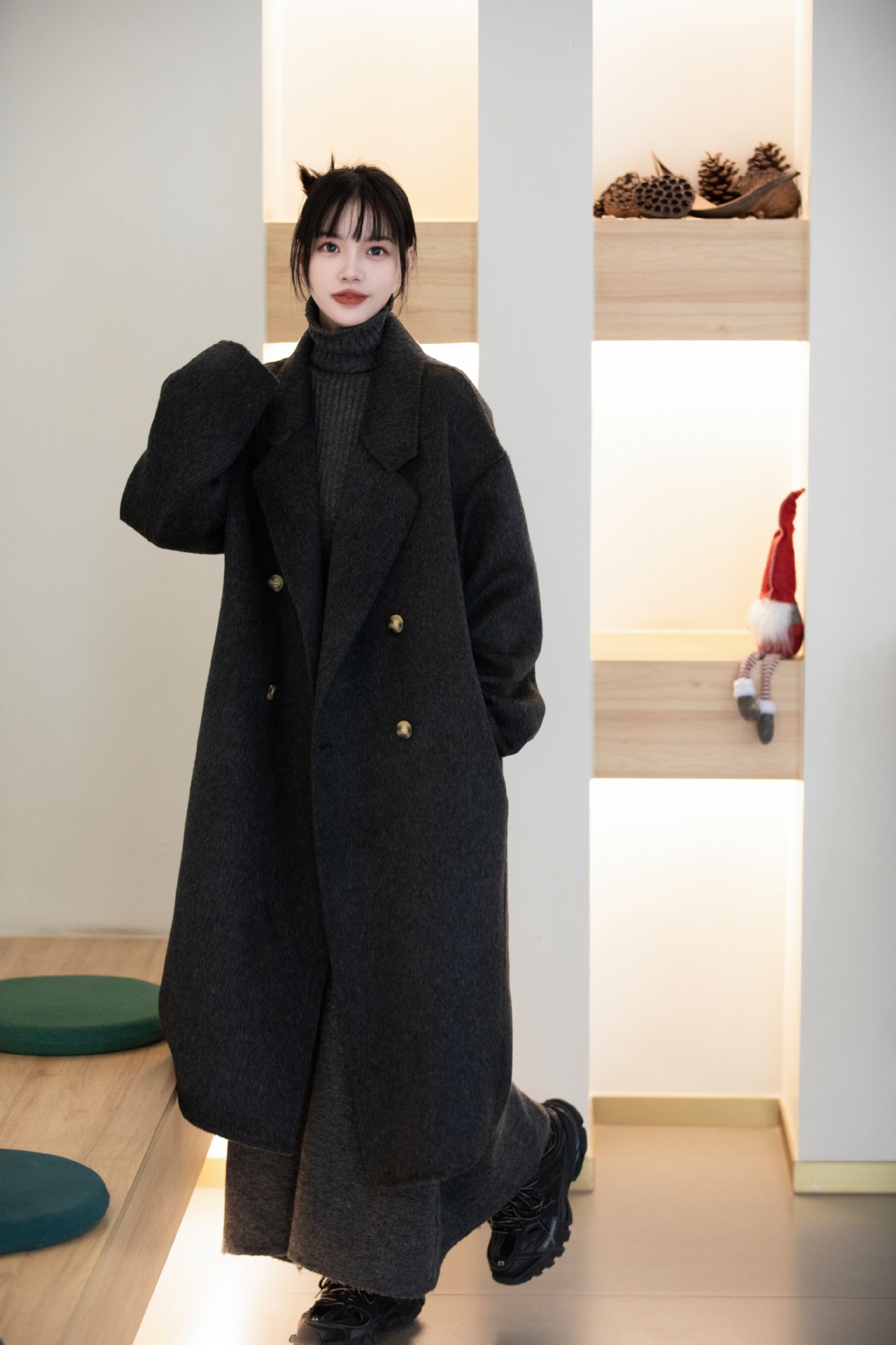 简约大气的大廓形显瘦藏肉高品质羊毛成分比打造奢感舒适穿着体验
