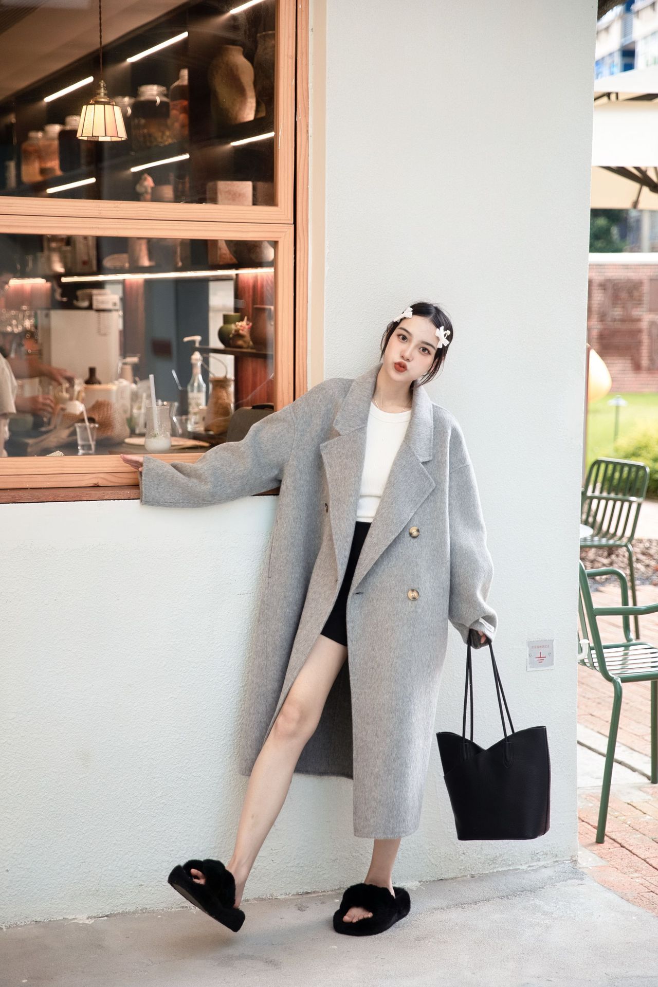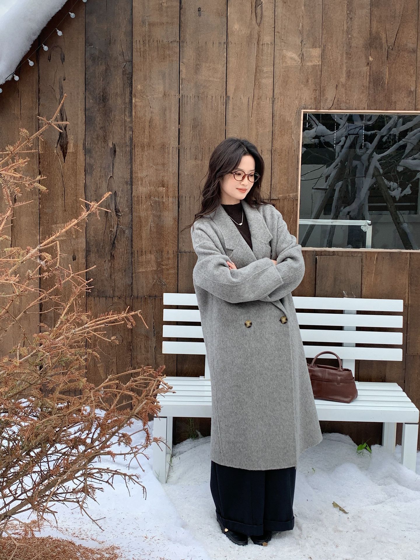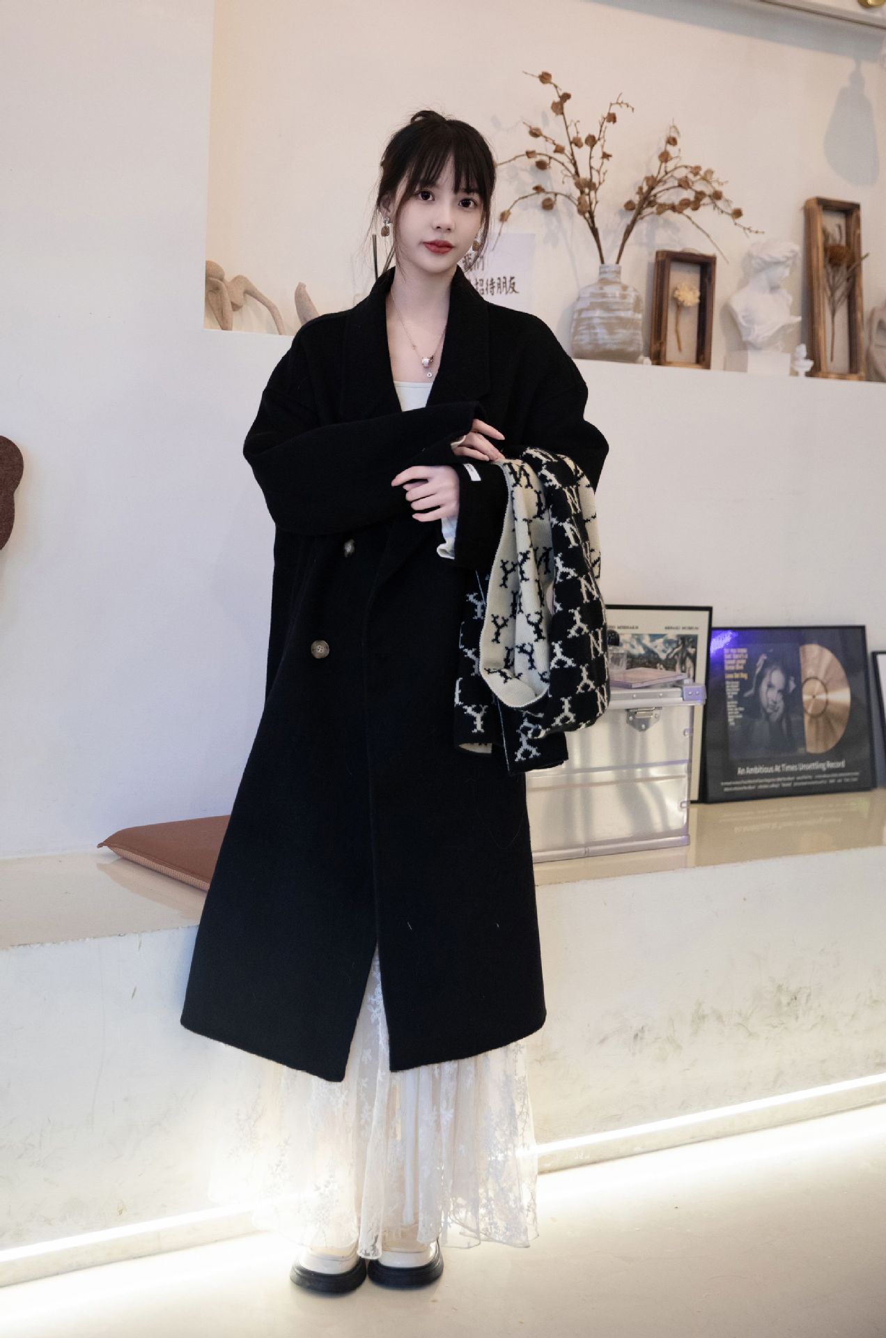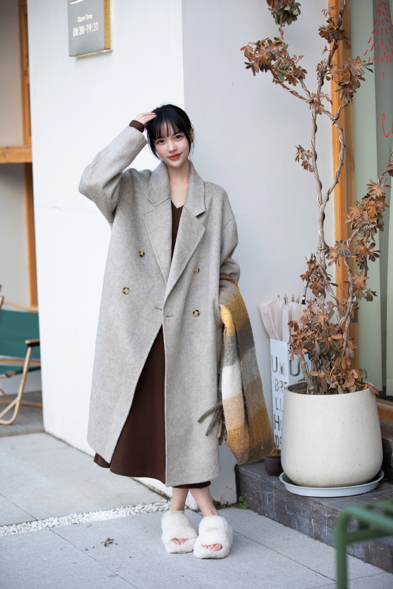 简约大气的大廓形显瘦藏肉高品质羊毛成分比打造奢感舒适穿着体验