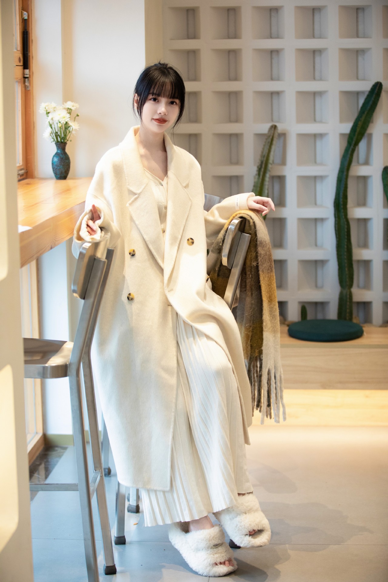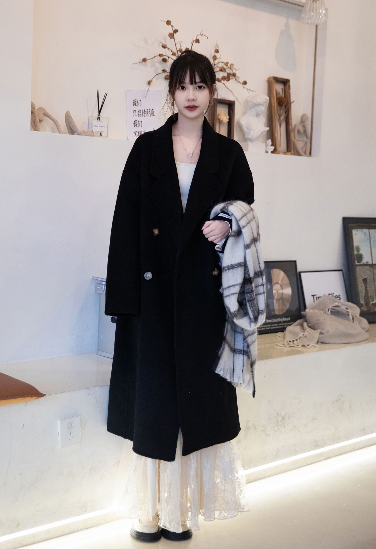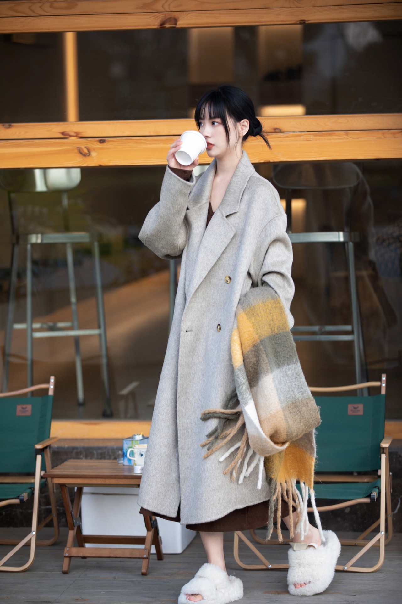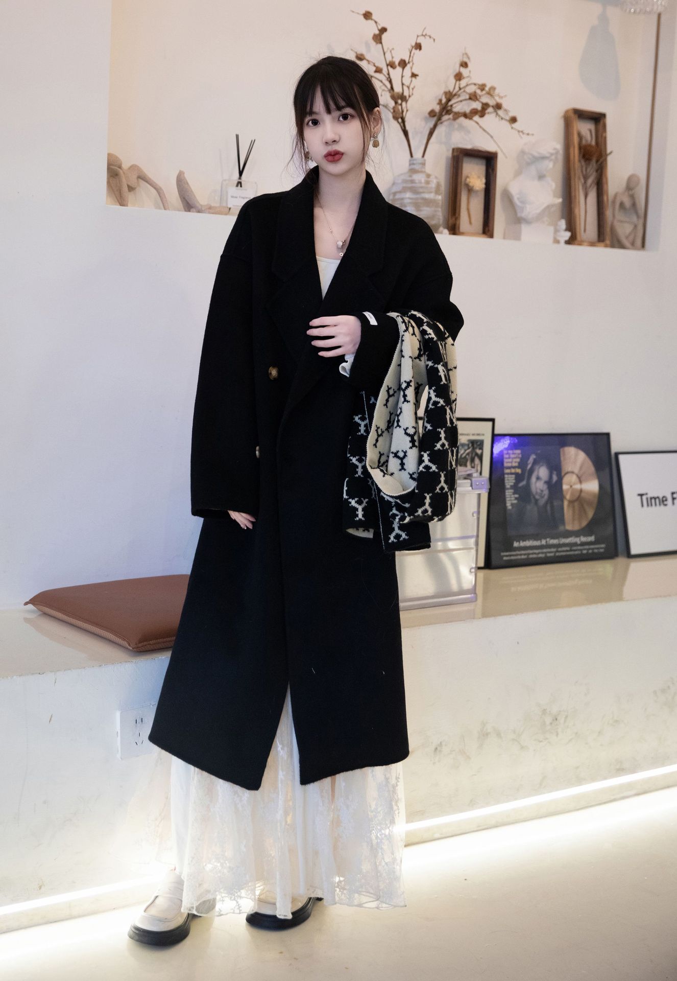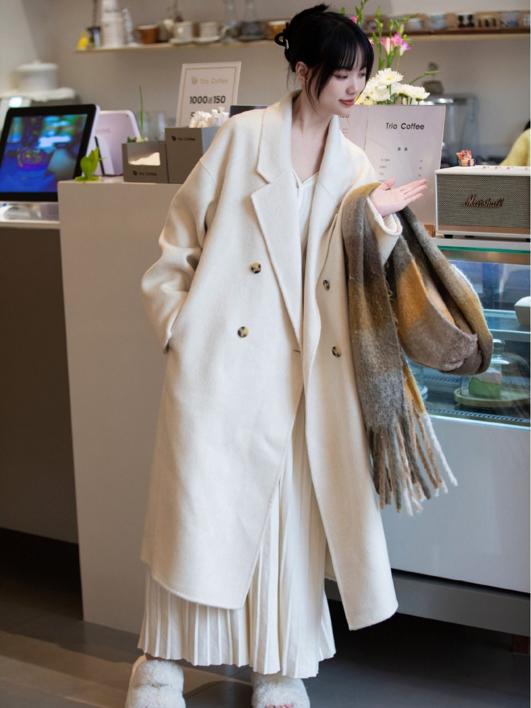 简约大气的大廓形显瘦藏肉高品质羊毛成分比打造奢感舒适穿着体验