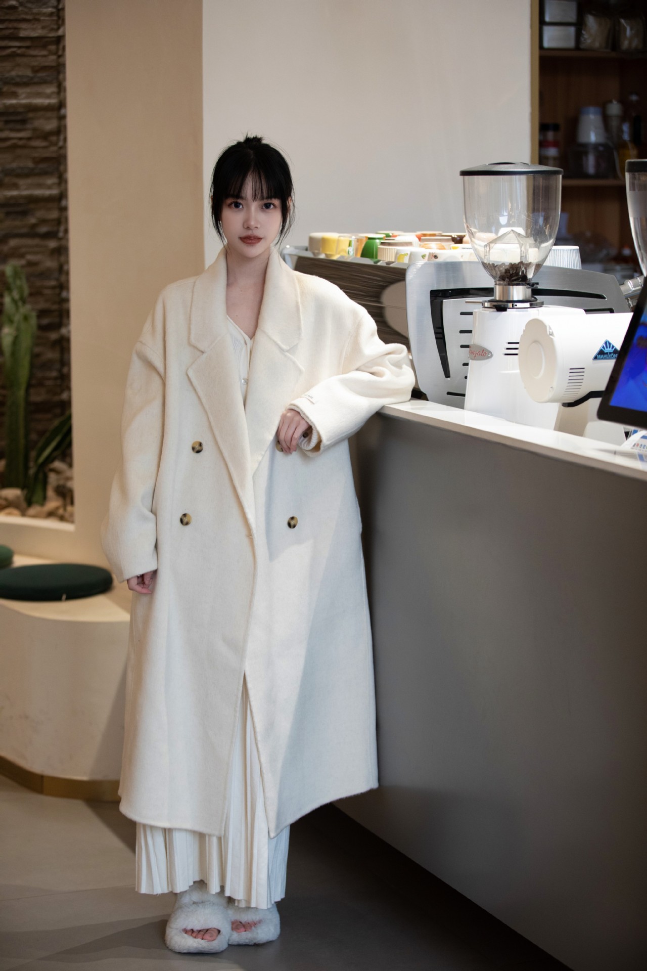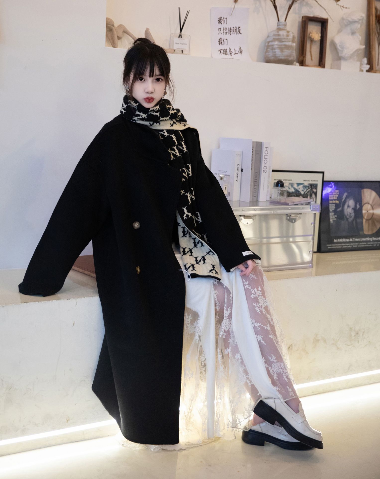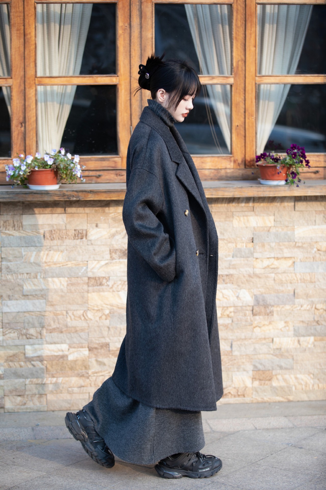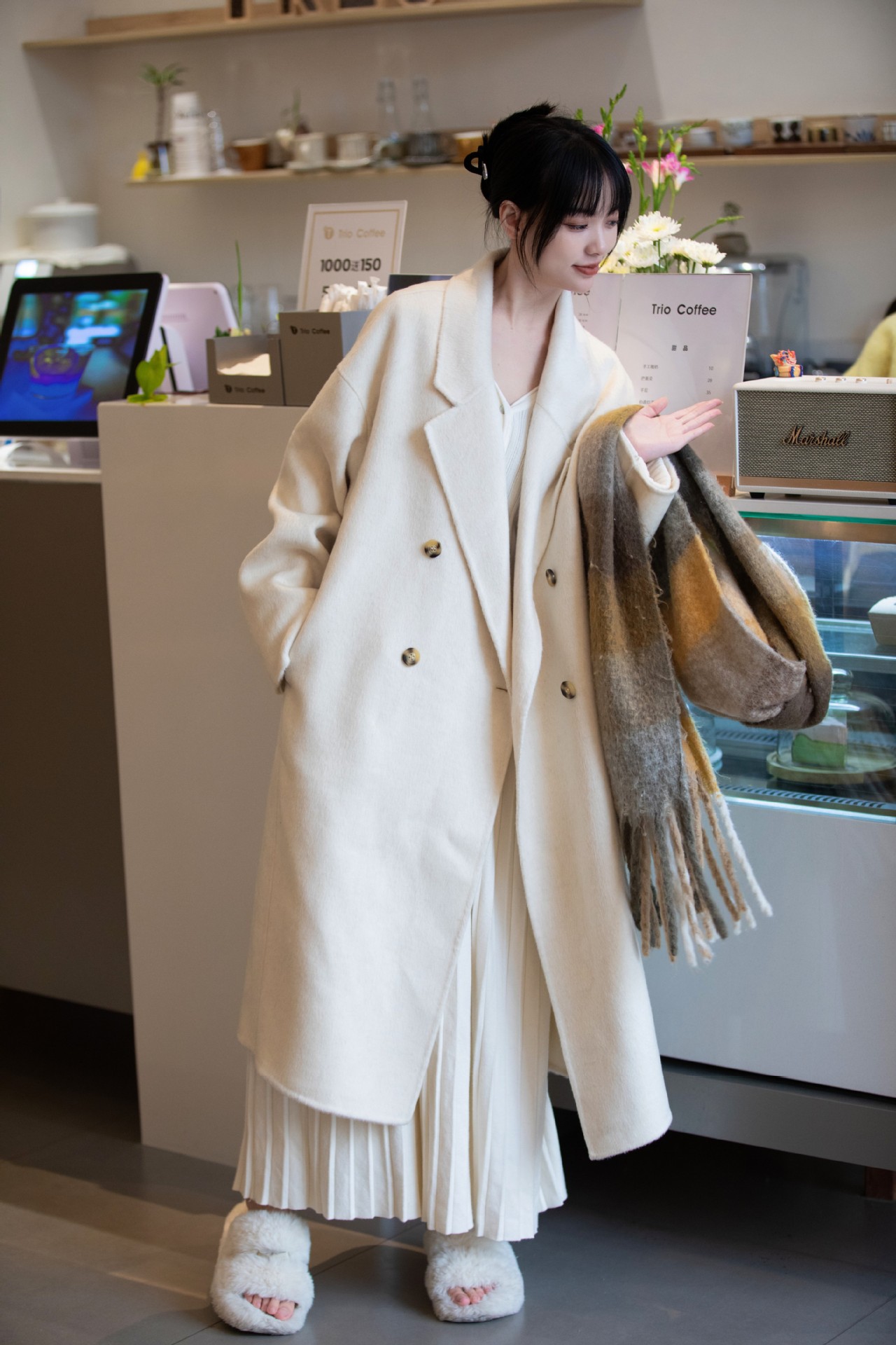 简约大气的大廓形显瘦藏肉高品质羊毛成分比打造奢感舒适穿着体验