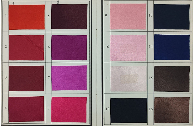 Белый; темно-синий; темно-фиолетовый; Темно-зеленый; Землисто-желтый; бордовый; черный; золото; красный; королевский синий; светло-фиолетовый