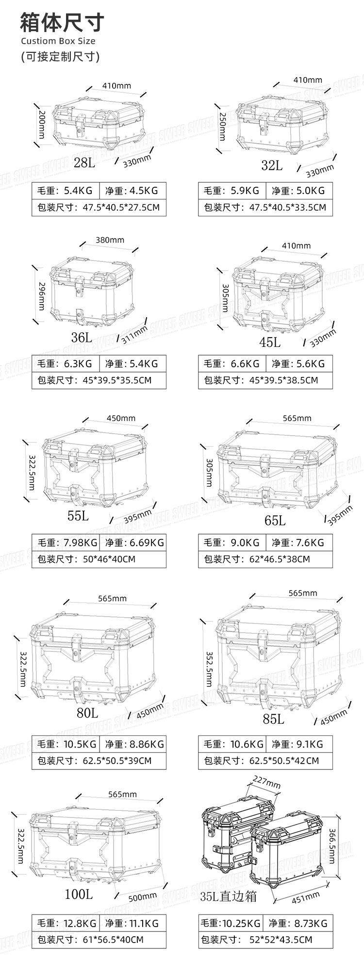 28L 32L 36L 45L 55L 65L 80L 100L мотоцикл алюминиевый сплав Хвостовая Коробка боковая коробка водонепроницаемый три коробки