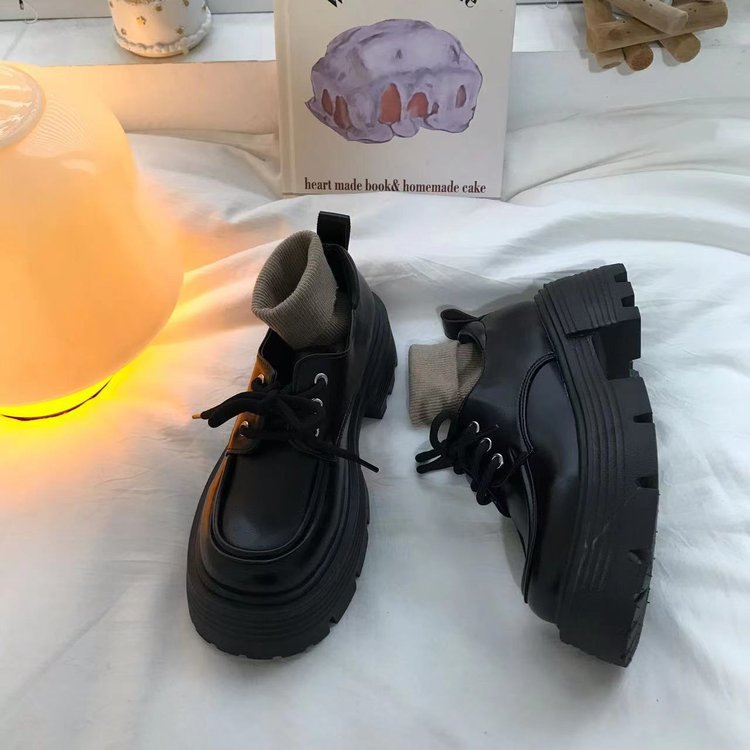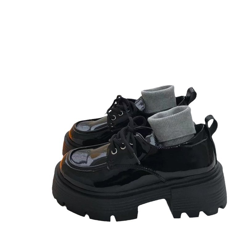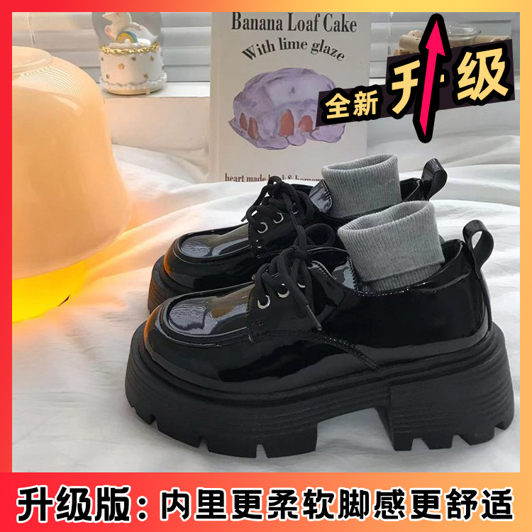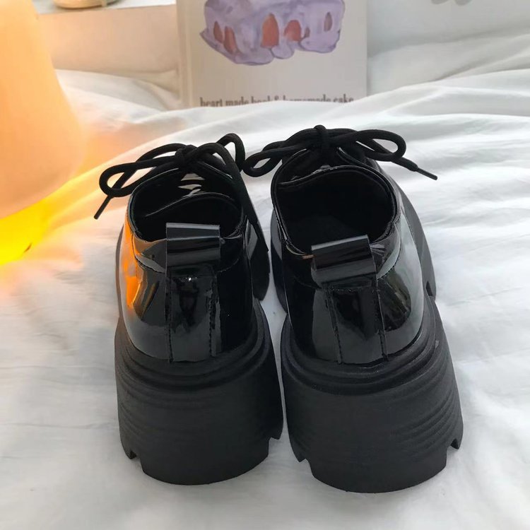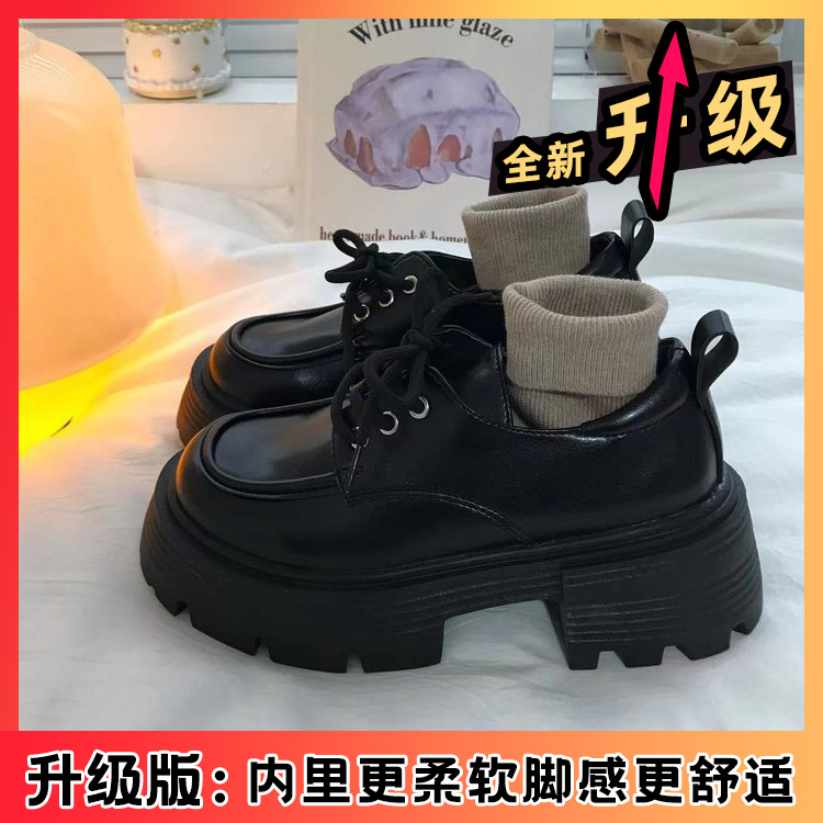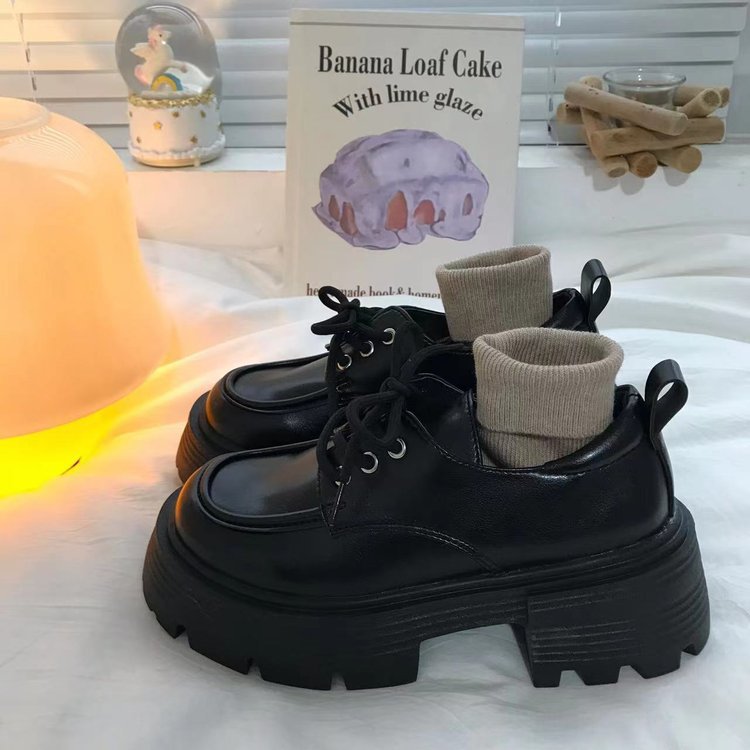 Черные маленькие кожаные туфли на толстой подошве со шнуровкой для женщин, осень 2023, новые женские туфли на плоской подошве в японском стиле в стиле ретро