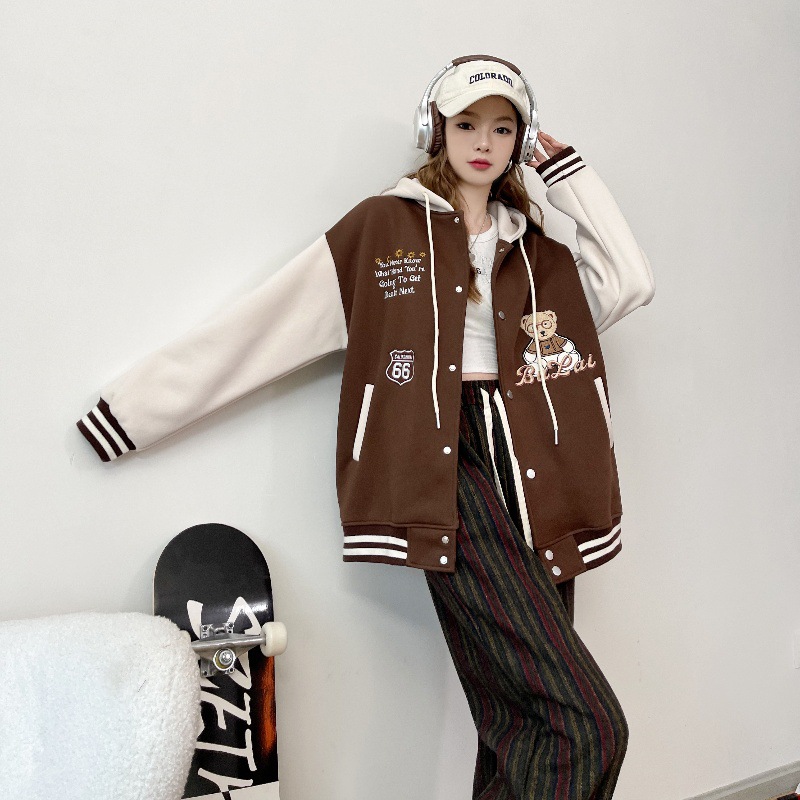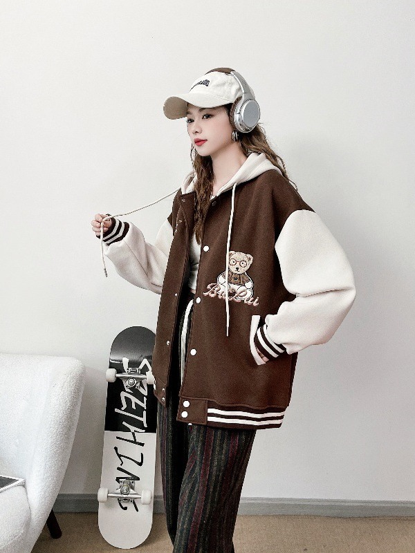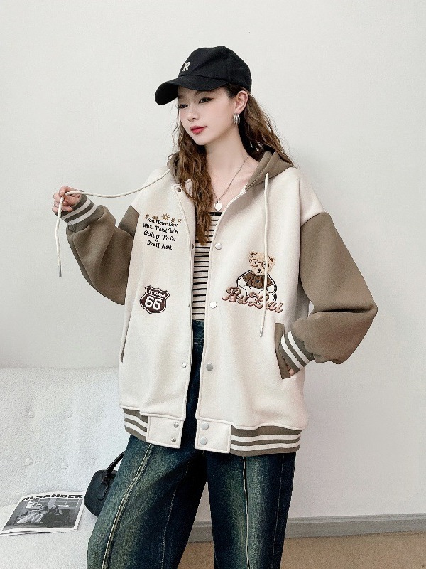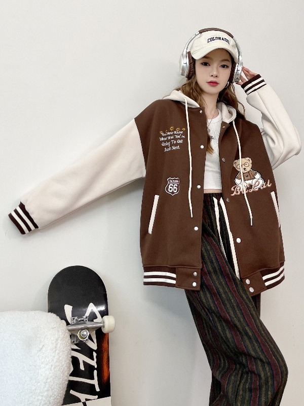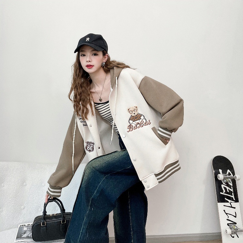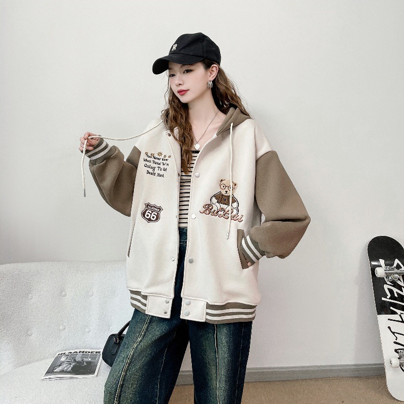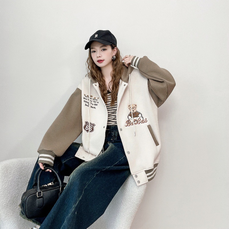Американская бейсбольная форма с капюшоном, весенне-осенняя одежда для девочек 2024, новая свободная повседневная универсальная куртка в стиле ретро с рукавами в тон