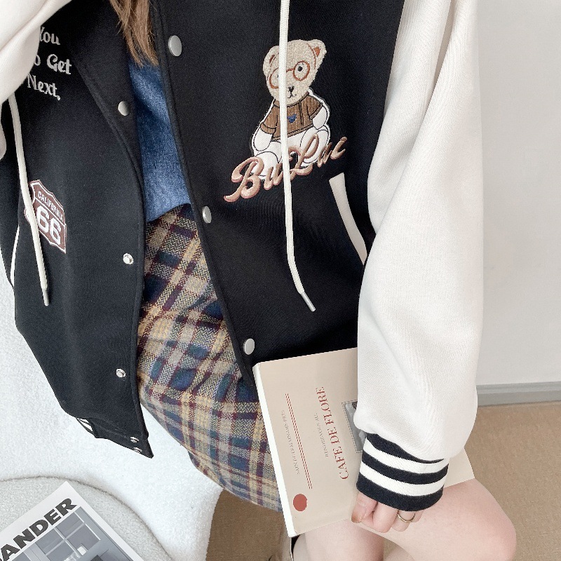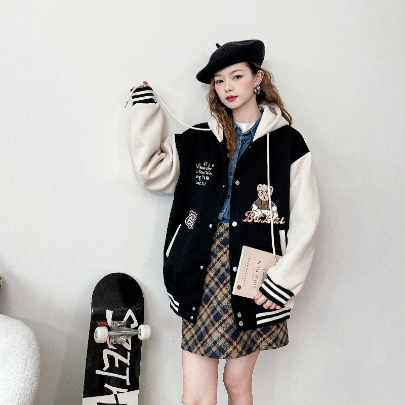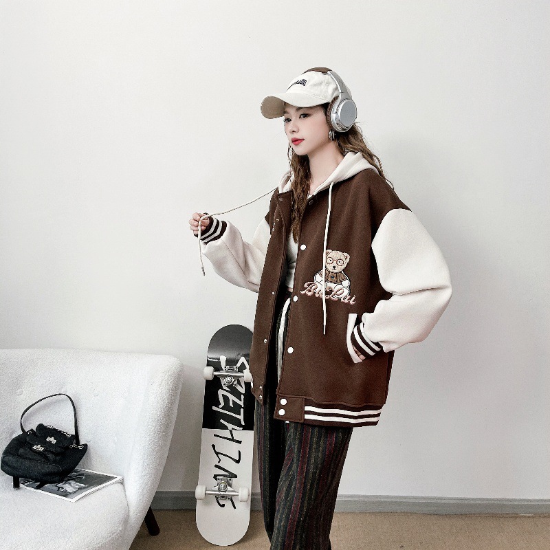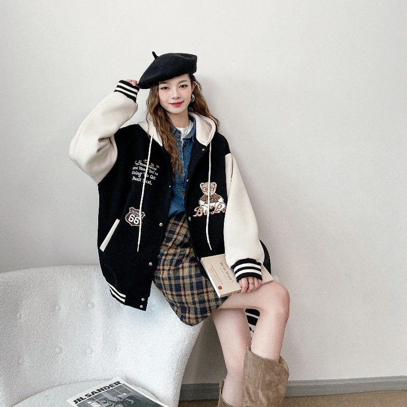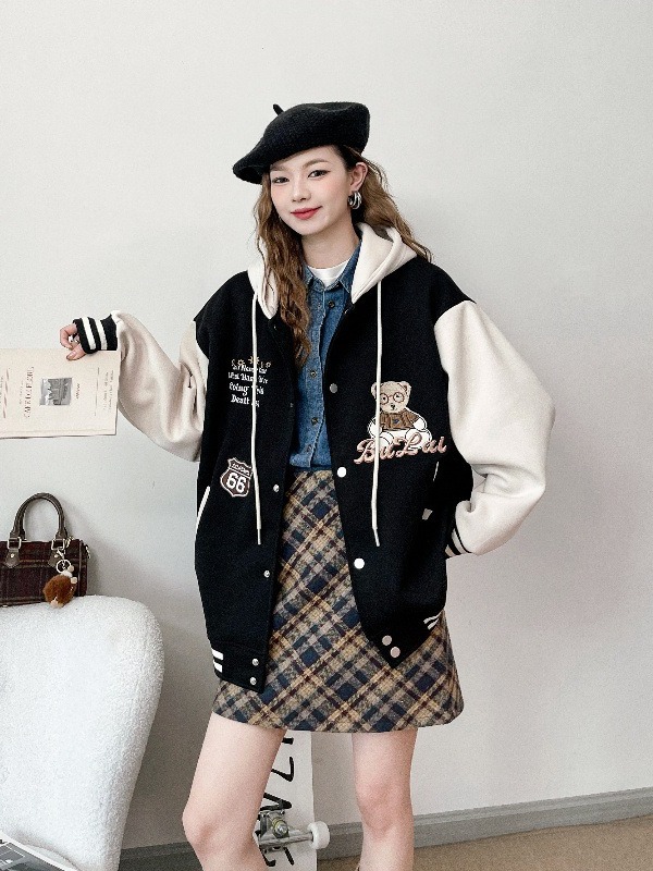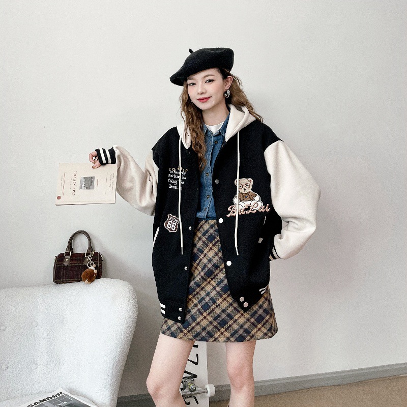 Американская бейсбольная форма с капюшоном, весенне-осенняя одежда для девочек 2024, новая свободная повседневная универсальная куртка в стиле ретро с рукавами в тон