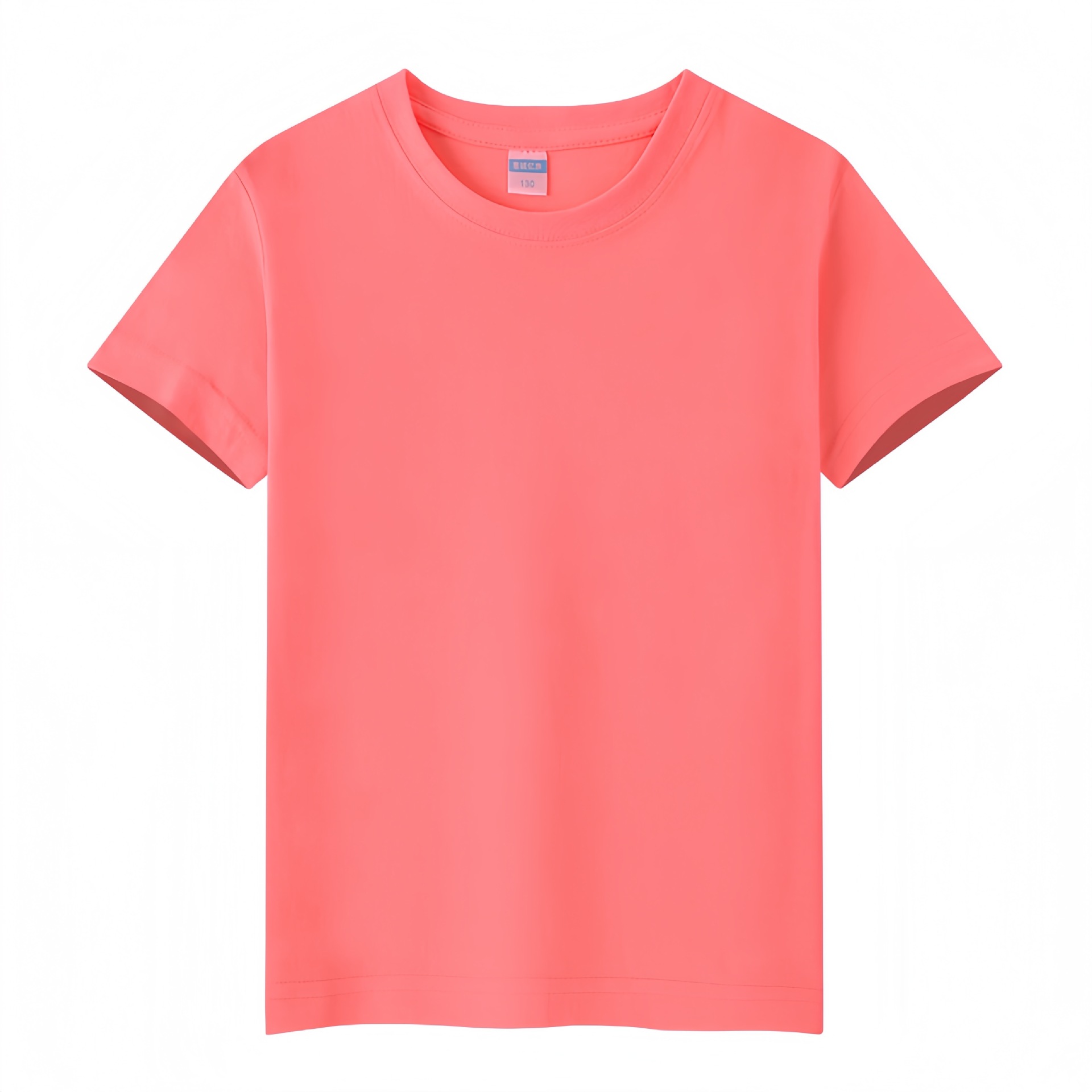 2025 новая детская футболка ярких цветов, однотонная рекламная рубашка, свободная форма с круглым вырезом и половиной рукавов для детского сада для мальчиков и девочек