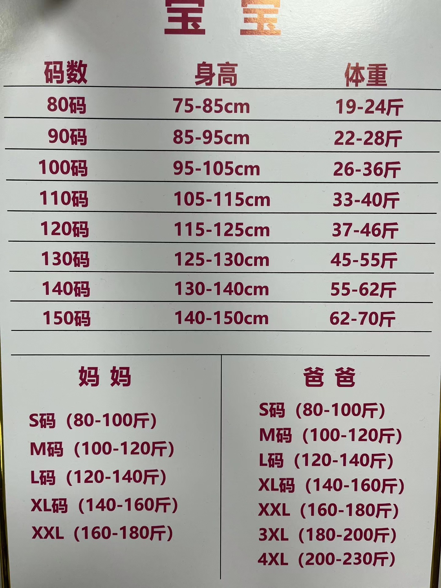 80 см; 90 см; 100 см; 110 см; 120 см; 130 см; 140 см; 150 см; С; М; Л; XL; 2XL; 3XL; 4XL