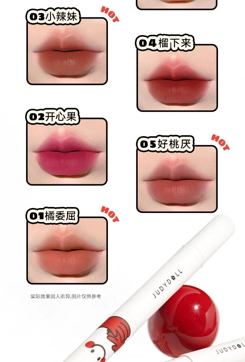 Крем-помада Judydoll Orange Series Limited Edition: матовая, с высокой пигментацией, текстура крем-кушон, эффект глянцевой помады, текстура лип-муд.