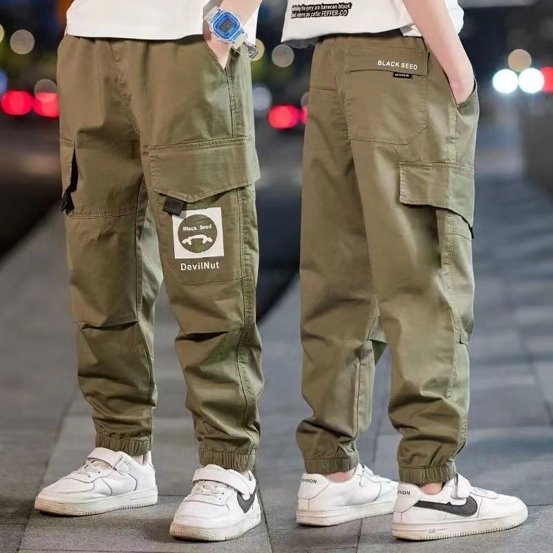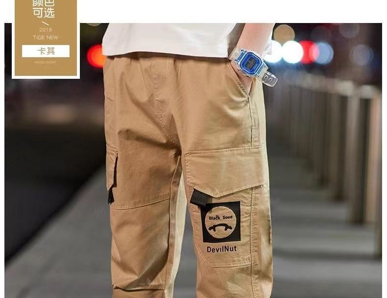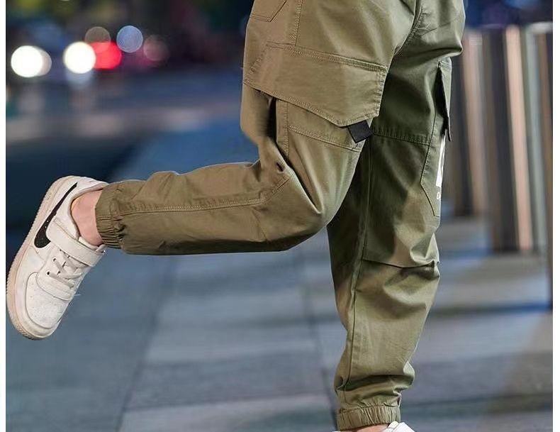 2024 детская одежда комбинезоны для мальчиков весна и осень восемь сезонов новые детские штаны спортивные штаны для детей среднего и большого размера с завязками на щиколотке Библиотека Внешняя торговля