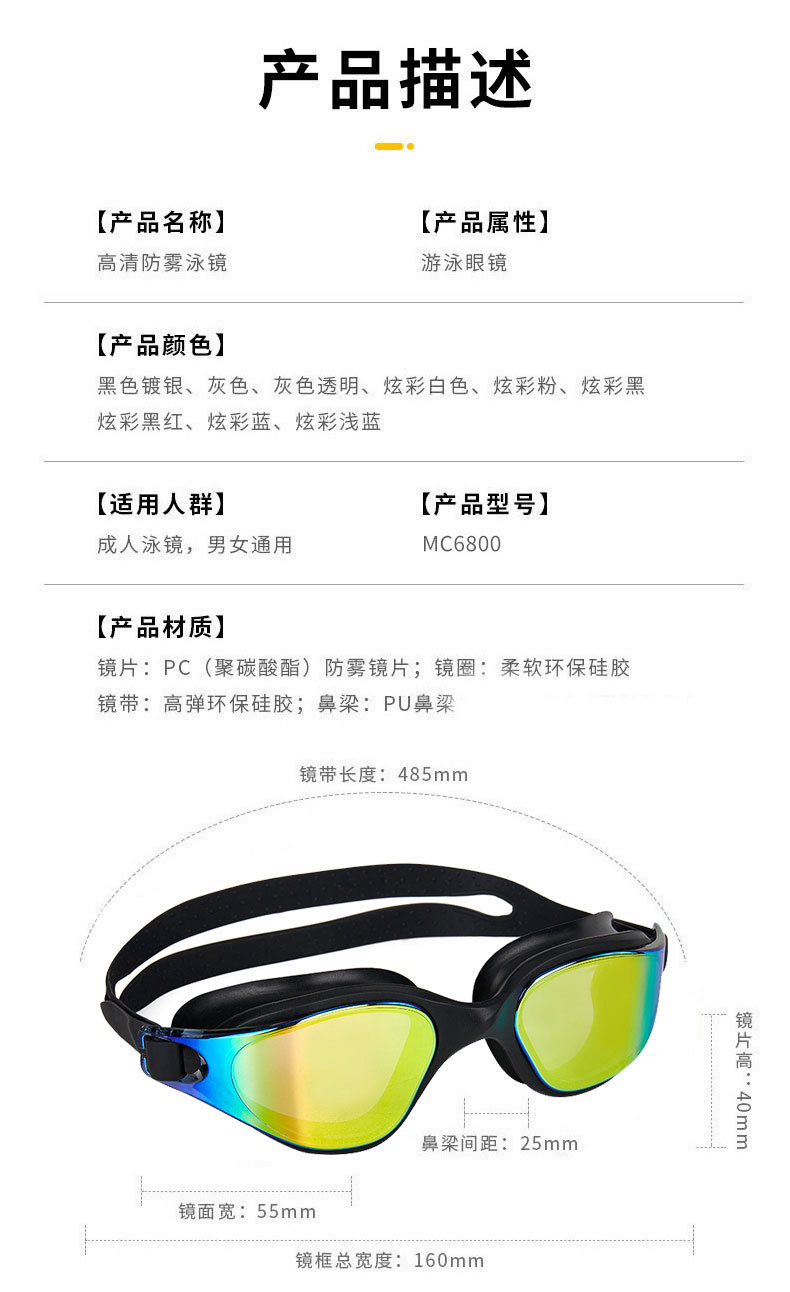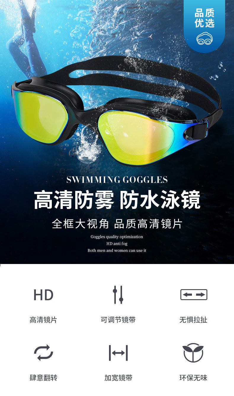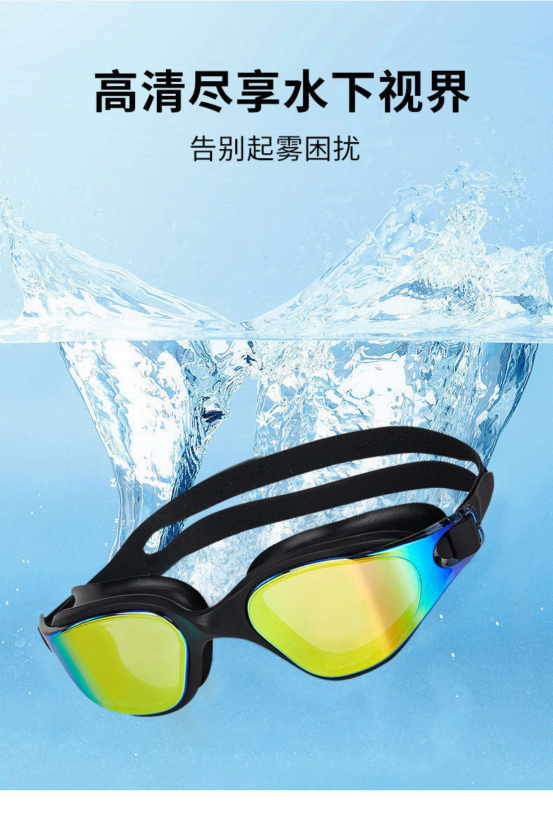 Очки для плавания с защитой от запотевания, профессиональные цельные силиконовые очки с большой оправой, оптом, с электролитически нанесенным покрытием.
