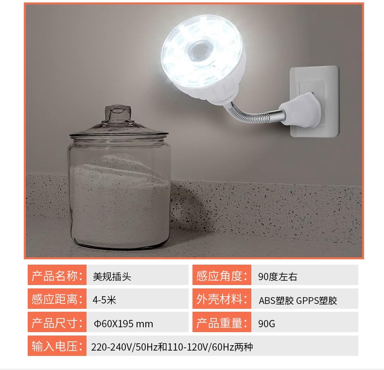 Сенсорный светильник XS-001C с американским штекером, 3 Вт, для ночного освещения, с датчиком движения, для трансграничной торговли