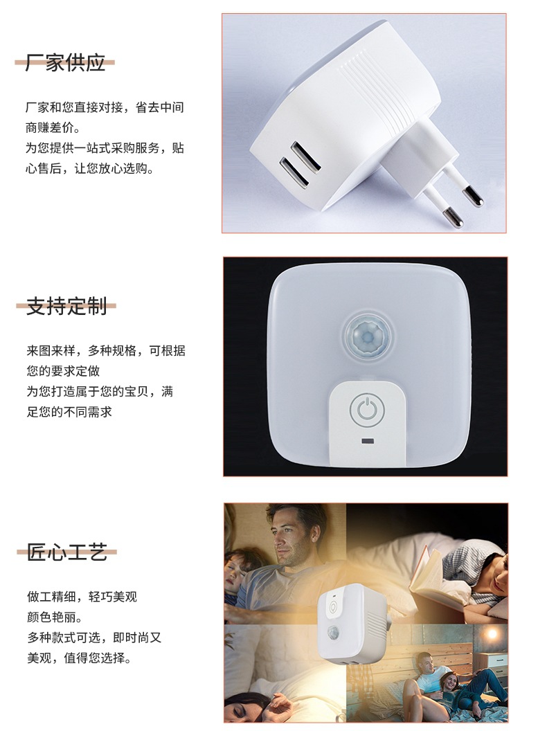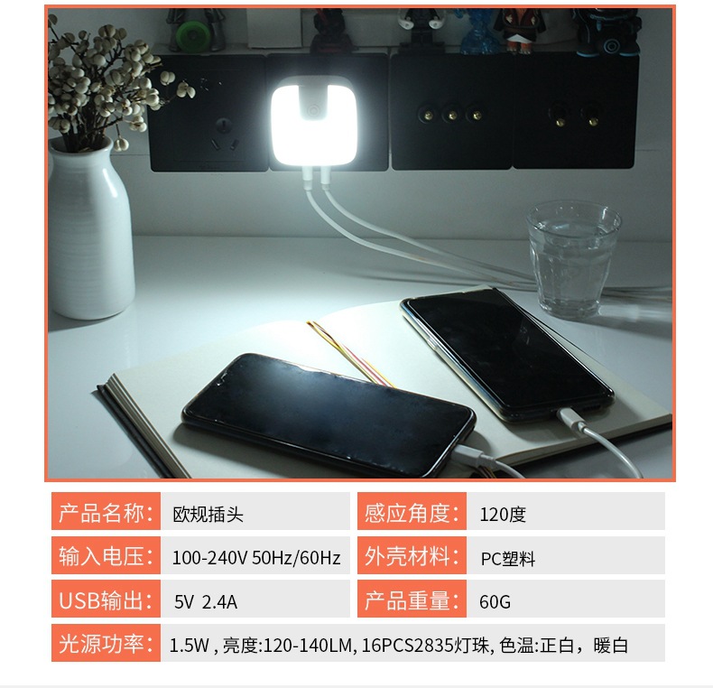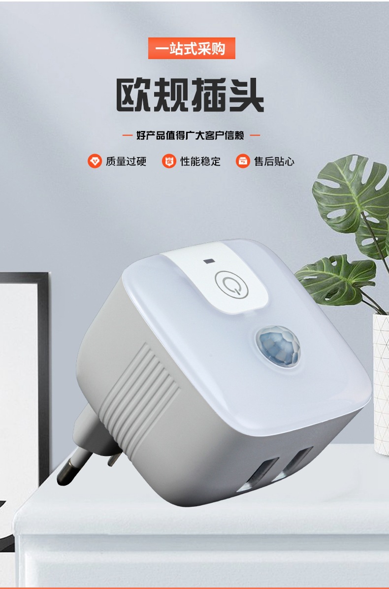 Штепсельной вилки европейского стандарта света ночи индукции человеческого тела СИД свет ночи вставляемой ультракрасной умный с светлым Заряжателем