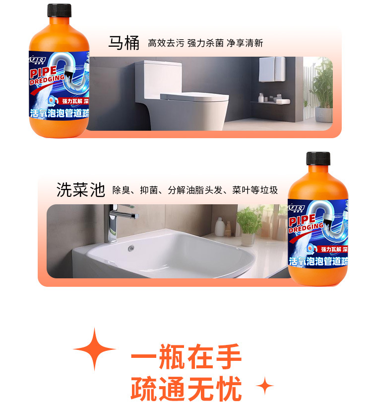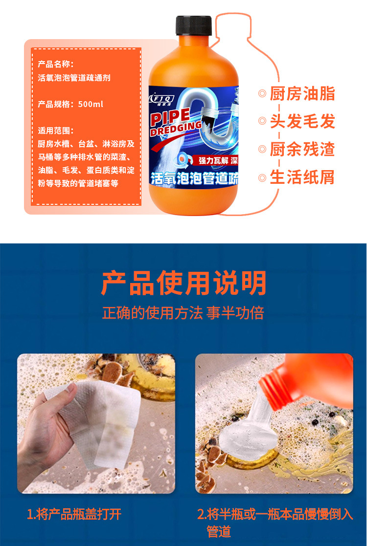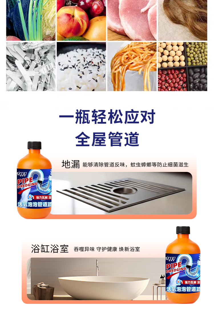 Мощное средство для очистки канализации в туалетах и кухнях, растворяет засоры, стерилизирует и уничтожает насекомых, та же модель, что и на Douyin.