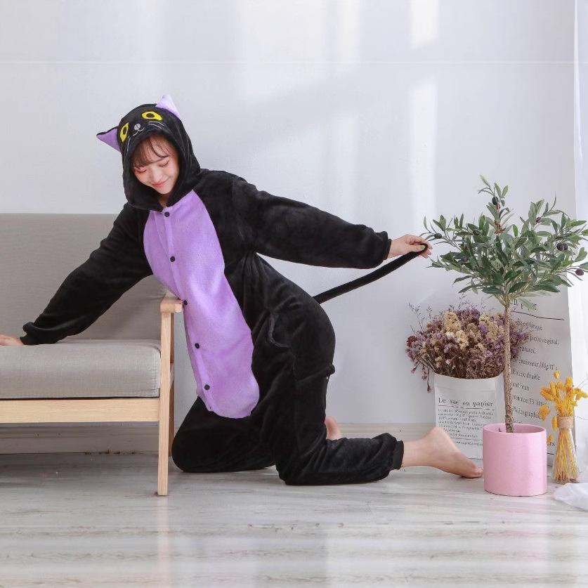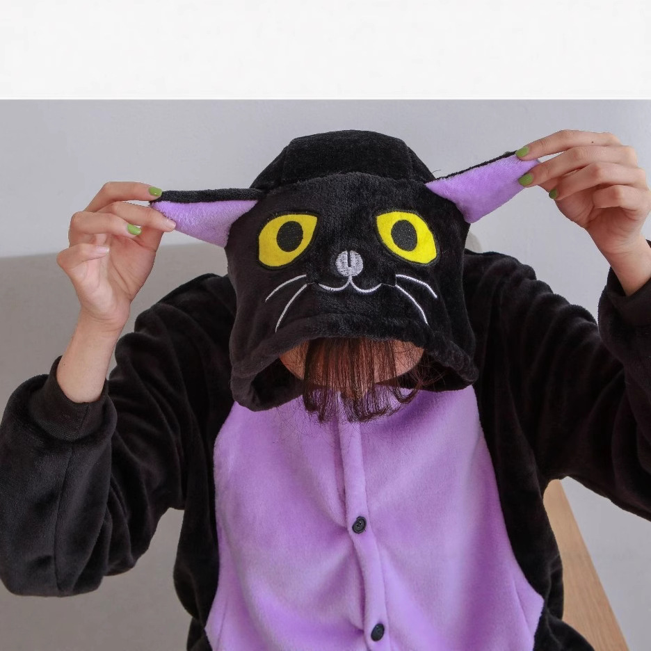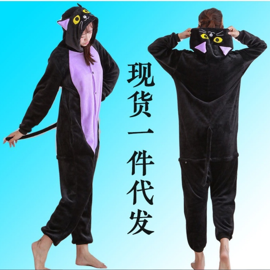 Осенне-зимняя милая пижама-комбинезон в стиле аниме «Полуночный кот», унисекс, для пар, фланелевая домашняя одежда