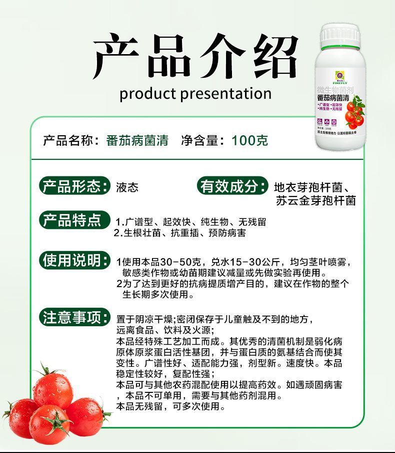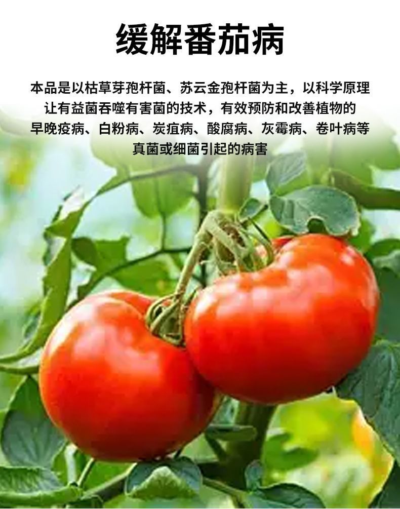 Микробиологический препарат с полезными бактериями для томатов: борьба с болезнями, подавление бактерий, биологическая профилактика и контроль, а также укрепление зеленых листьев и рассады.