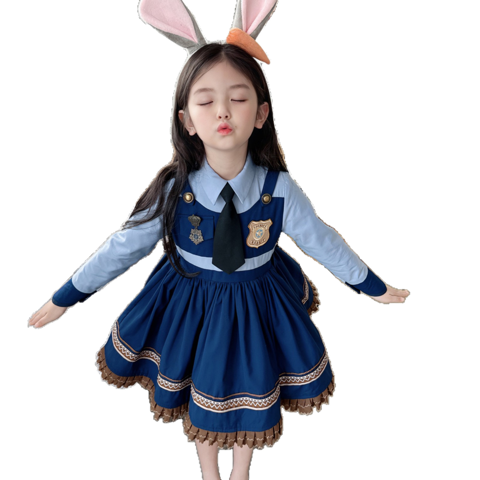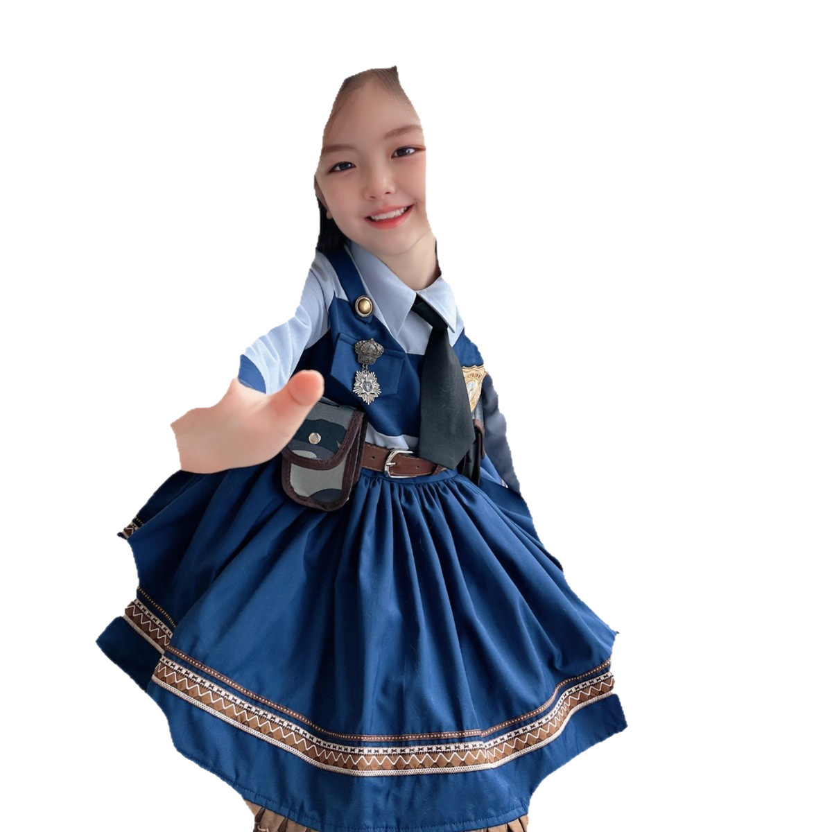 2024 Весна и лето новый детский кролик полицейский костюм COS мультфильм Лолита поддельный комплект из двух частей платье для девочки
