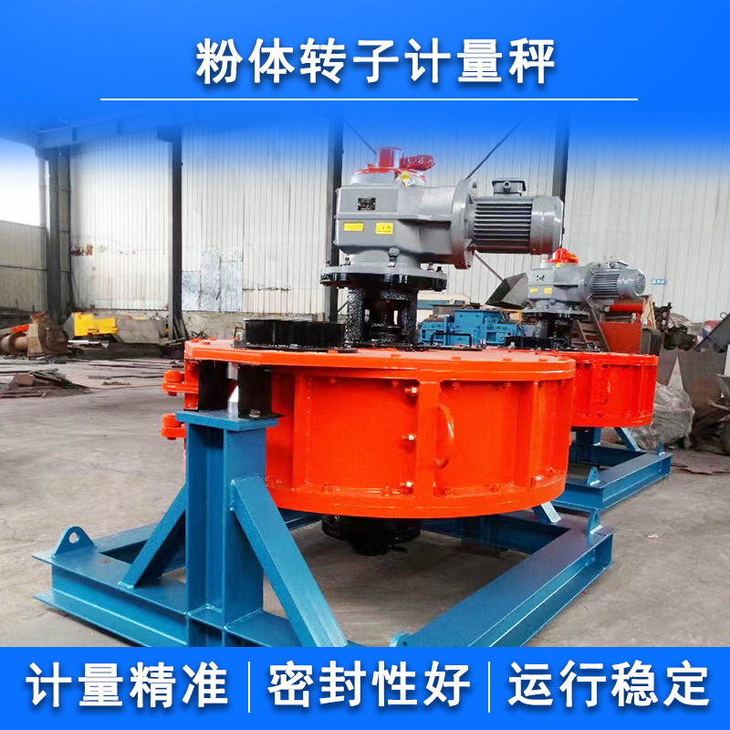 粉体物料由粉体定量喂料机送入环状天平转子秤,转子秤叶轮旋转,使物料在进料口至出料口半园周内均匀流动,由于秤体采用天平结构,此时圆盘形秤体一侧有物料,另一半没有物料,使秤体失去平衡,物料的重量经称重传感器检测送入控制仪表,同时把检测到的速度信号送入仪表,经处理后得到瞬时流量及累计量,控制喂料转速即可调节流量。