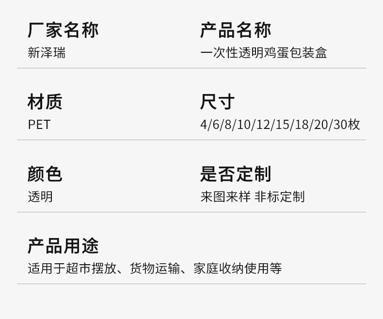 Упаковка из 4 (100 штук) пластиковых лотков для яиц среднего размера, универсальный стиль.; Упаковка из 6 (100 штук) пластиковых лотков для яиц среднего размера, универсальный стиль.; Упаковка из 8 (100 штук) пластиковых лотков для яиц среднего размера, универсальный стиль.; Упаковка из 10 (100 штук) пластиковых лотков для яиц среднего размера, универсальный стиль.; 12 упаковок (100 штук) среднего размера пластиковый лоток для яиц, универсальный стиль; 15 шт. (80 шт.) пластиковый лоток для яиц среднего размера, универсальный стиль; 18 шт. (50 шт.) средний пластиковый лоток для яиц, универсальный стиль; Упаковка из 20 (50 штук) пластиковых лотков для яиц среднего размера, универсальный стиль.; Упаковка 30 штук (50 штук) пластиковый лоток для яиц среднего размера, универсальный стиль.; Упаковка из 30 штук (50 штук) среднего размера пластиковый лоток для яиц, утолщенный и устойчивый к давлению.