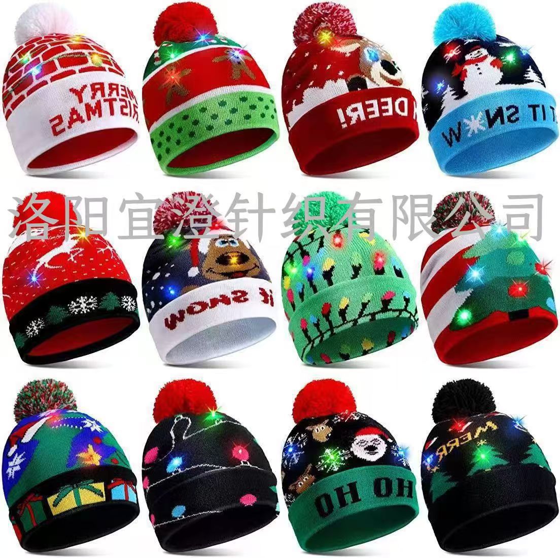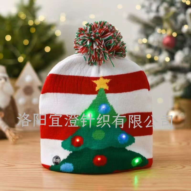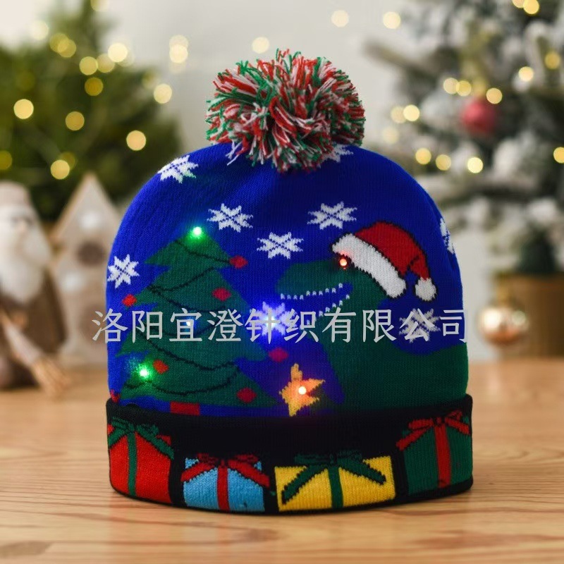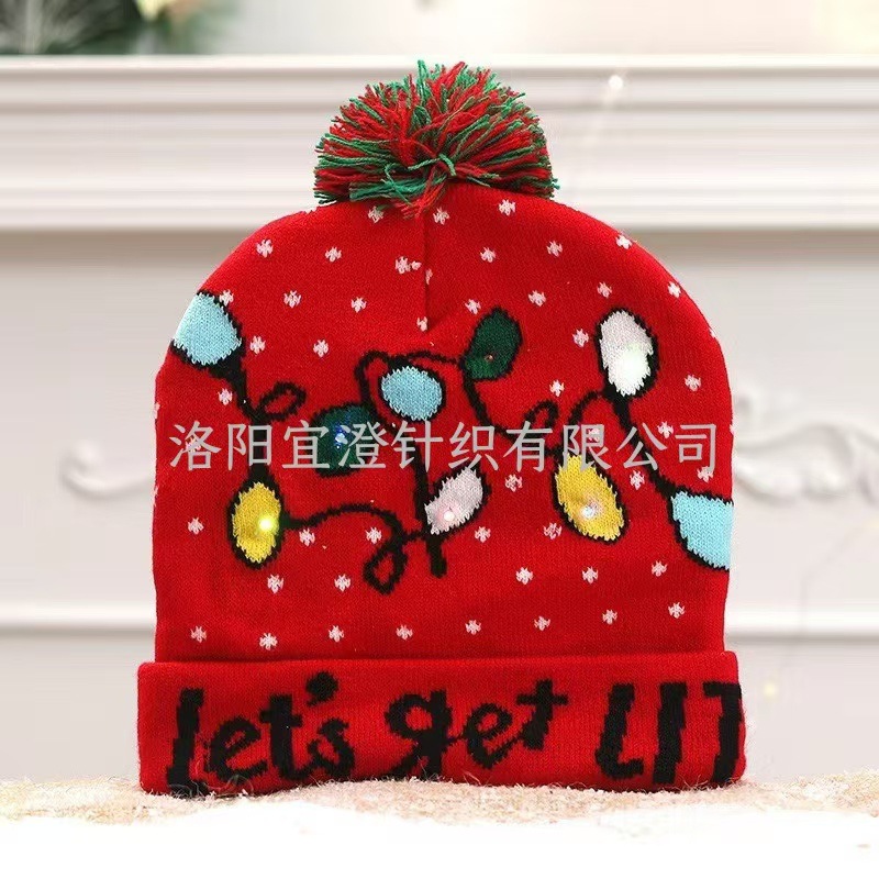 Шапка осенне-зимняя трансграничная Рождественская светодиодная вязаная шапка красочная светлая Вечеринка взрослая Рождественская шапка шерстяная шапка оптом