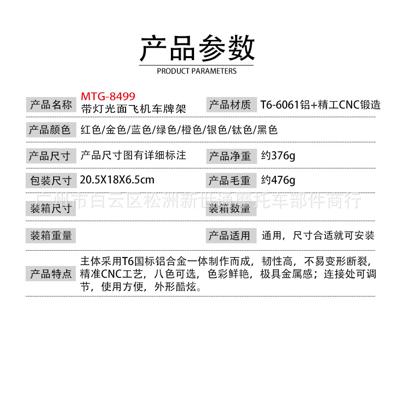 MTG-8499 Глянцевая рамка номерного знака самолета с подсветкой
