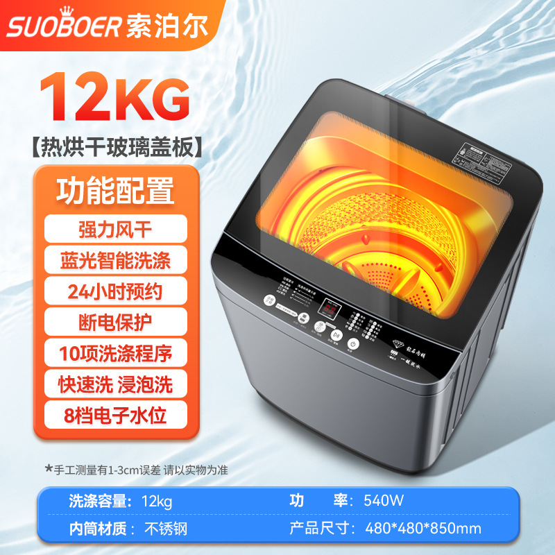 Стиральная машина Sobor, полностью автоматическая, вместимостью 10 кг, компактная, подходит для домашнего использования, общежитий и съемных квартир, с функциями стирки и отжима.