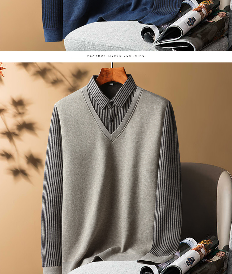 Свитер для папы, утолщенный мужской свитер на флисовой подкладке, свободный свитер для мужчин среднего и пожилого возраста, теплая зимняя одежда, искусственный свитер из двух частей, мужская одежда