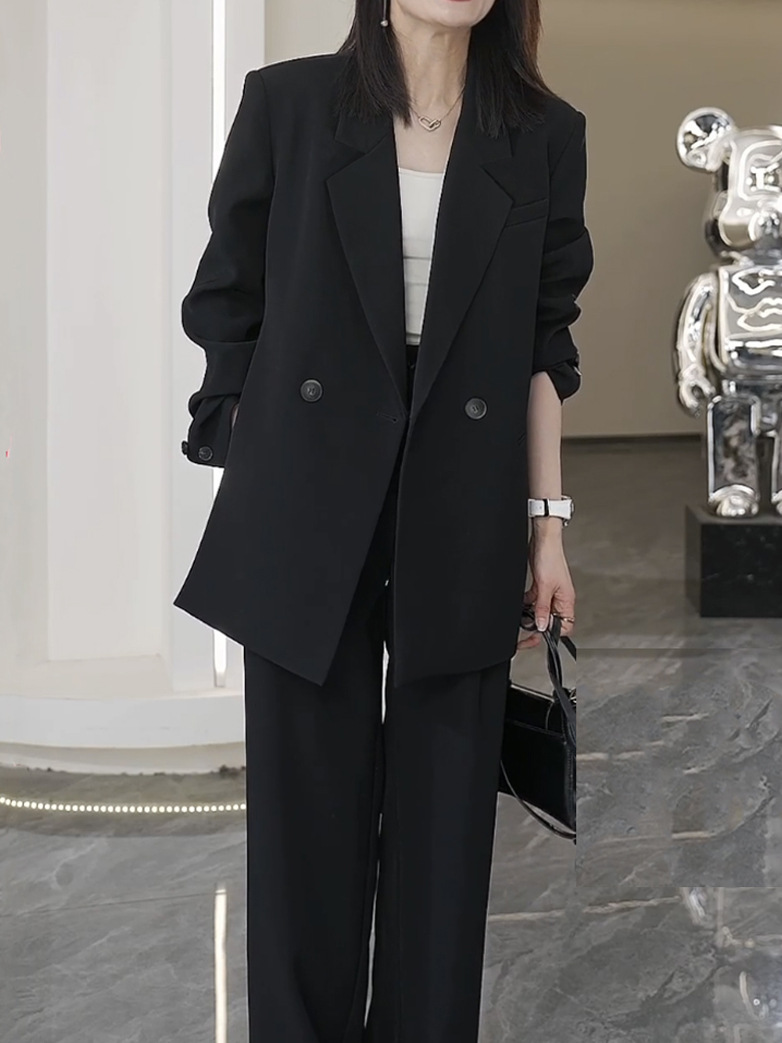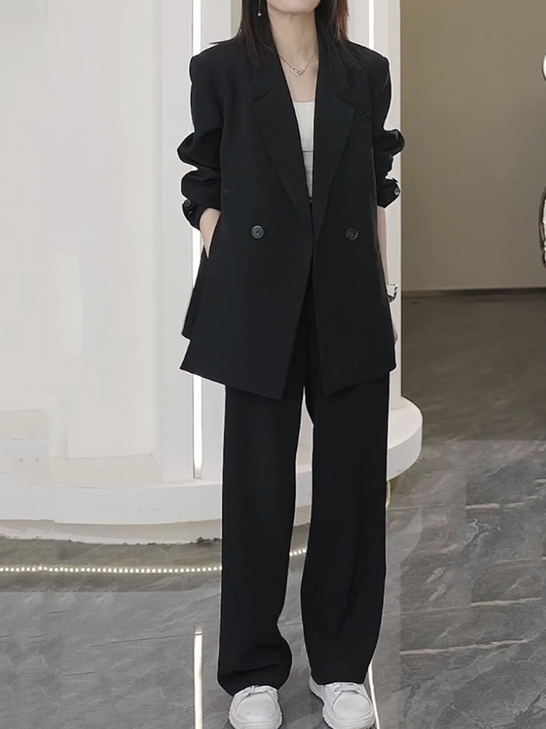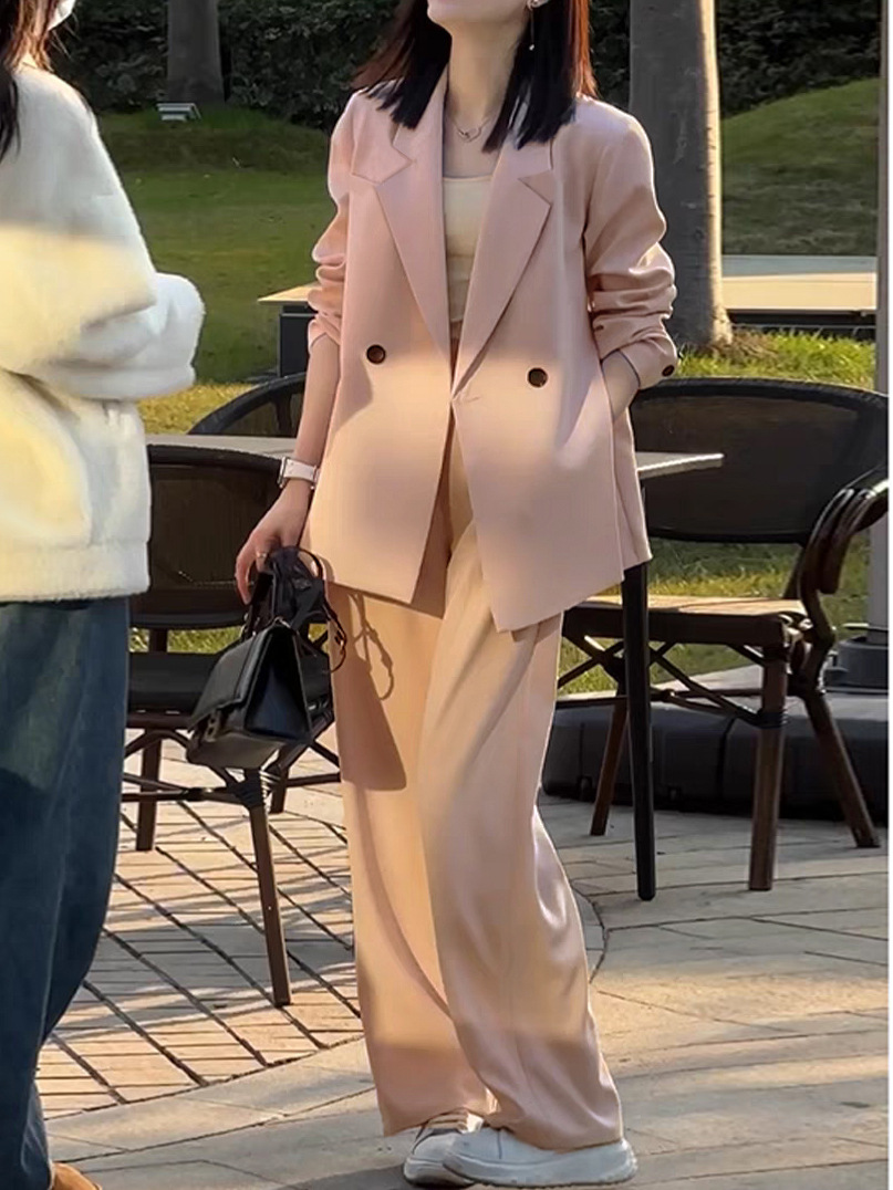 XZ121-spring и осенний пиджак для женщин больших размеров, женские широкие брюки, костюм, толстый розовый свободный костюм MM200 кг
