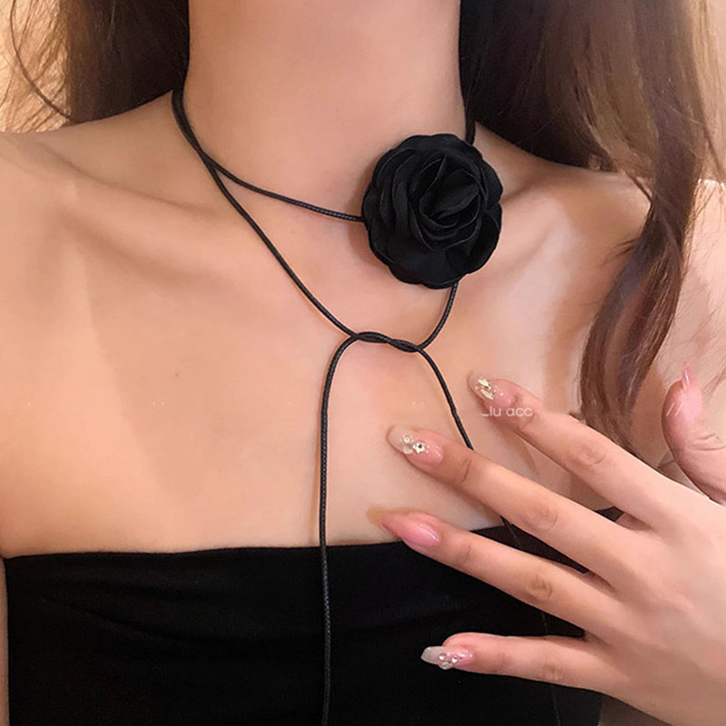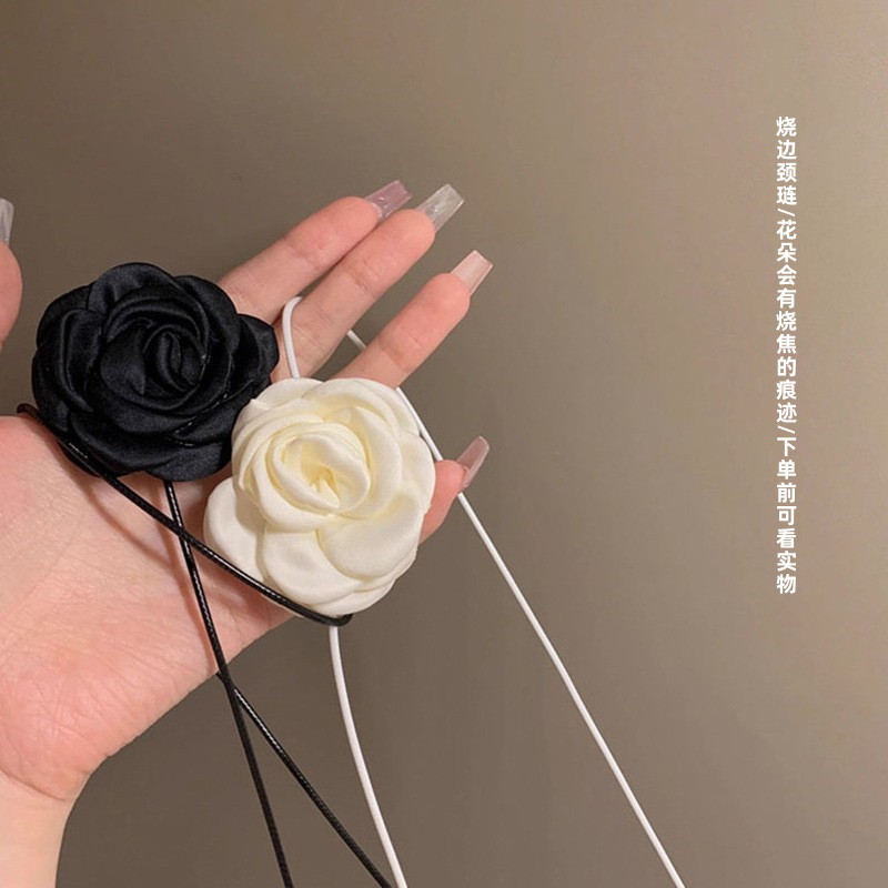 Черно-белое цветочное ожерелье Роза Колье Шея Цветок шейный ремешок ожерелье женский воротник на шею Камелия ключицы цепи