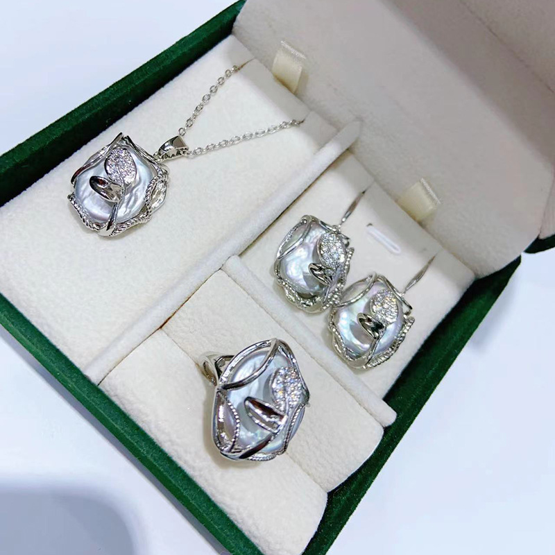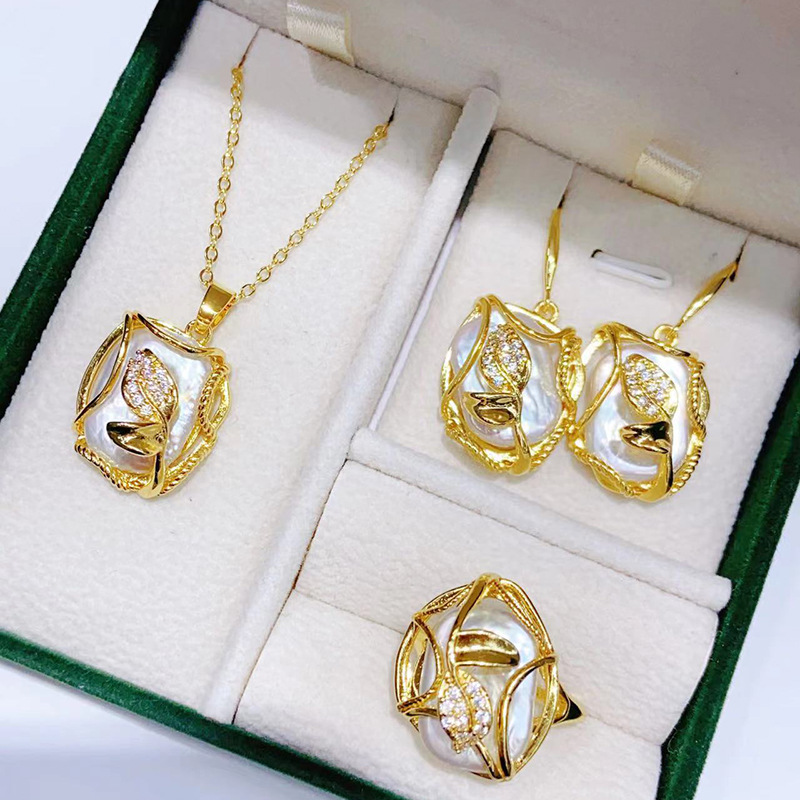 Барочный барочный пресноводный жемчуг серьги кольцо подвеска три комплекта модные дикие украшения жемчужный набор оптом