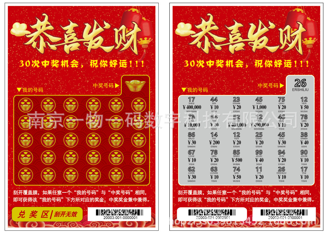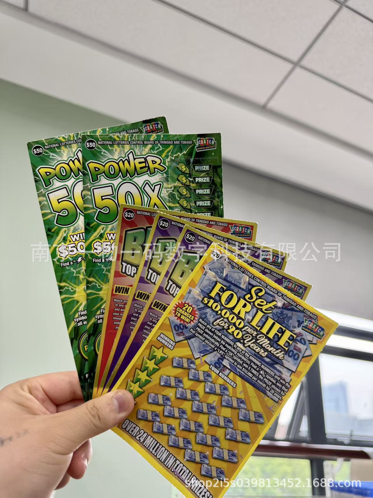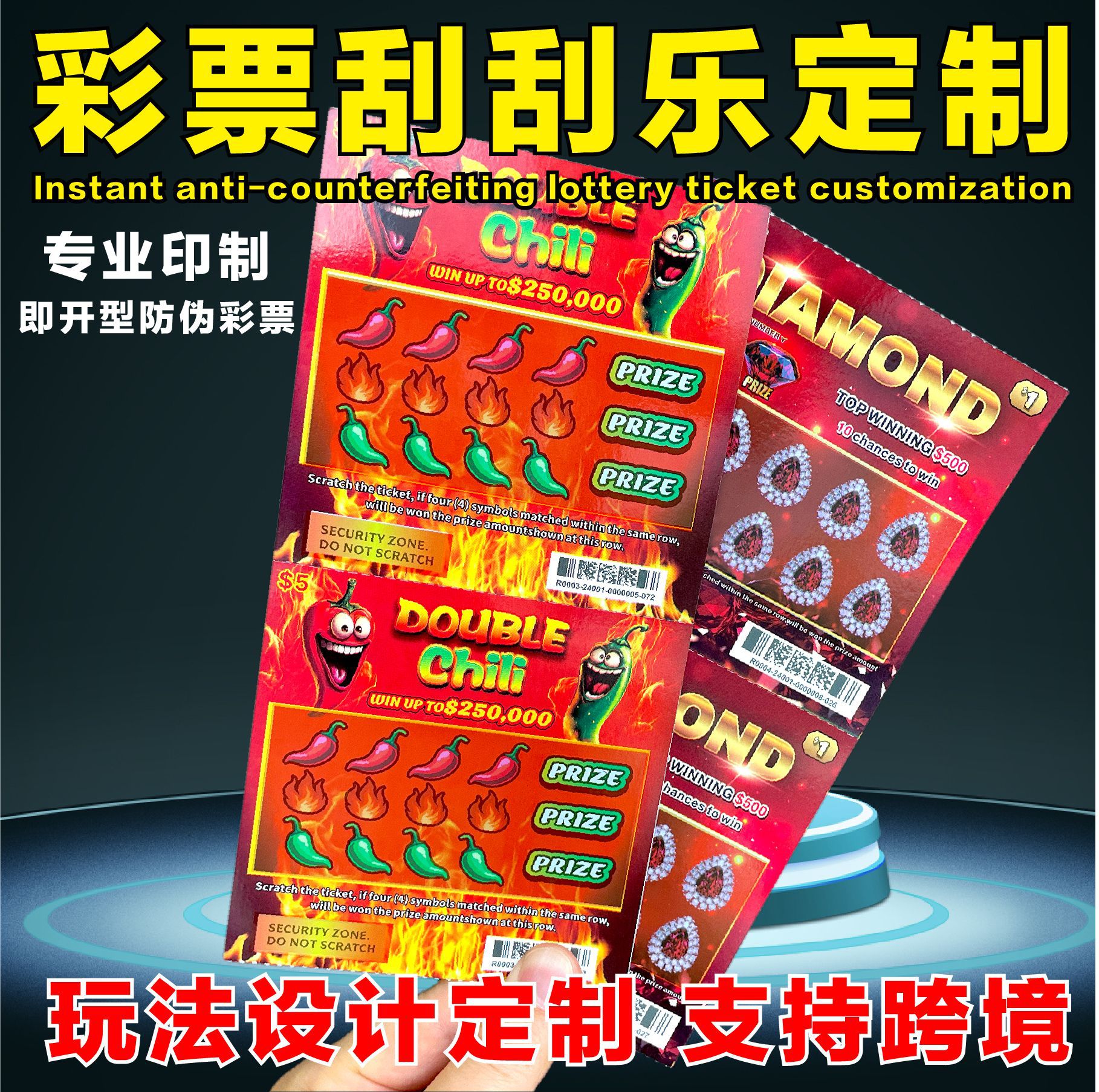 Завод-изготовитель изготавливает на заказ зарубежные лотерейные скретч-карты, эксклюзивно для трансграничной внешнеторговой лотереи, каждая карта — один код.