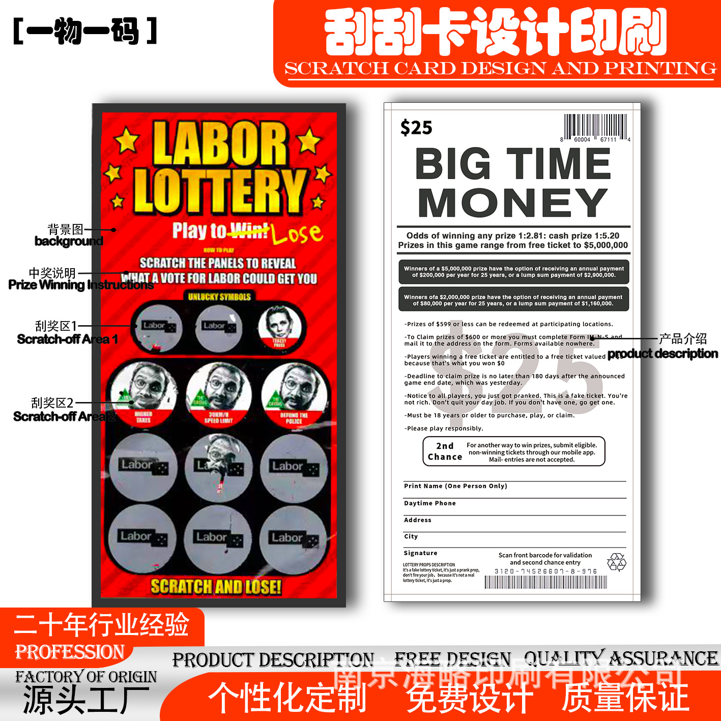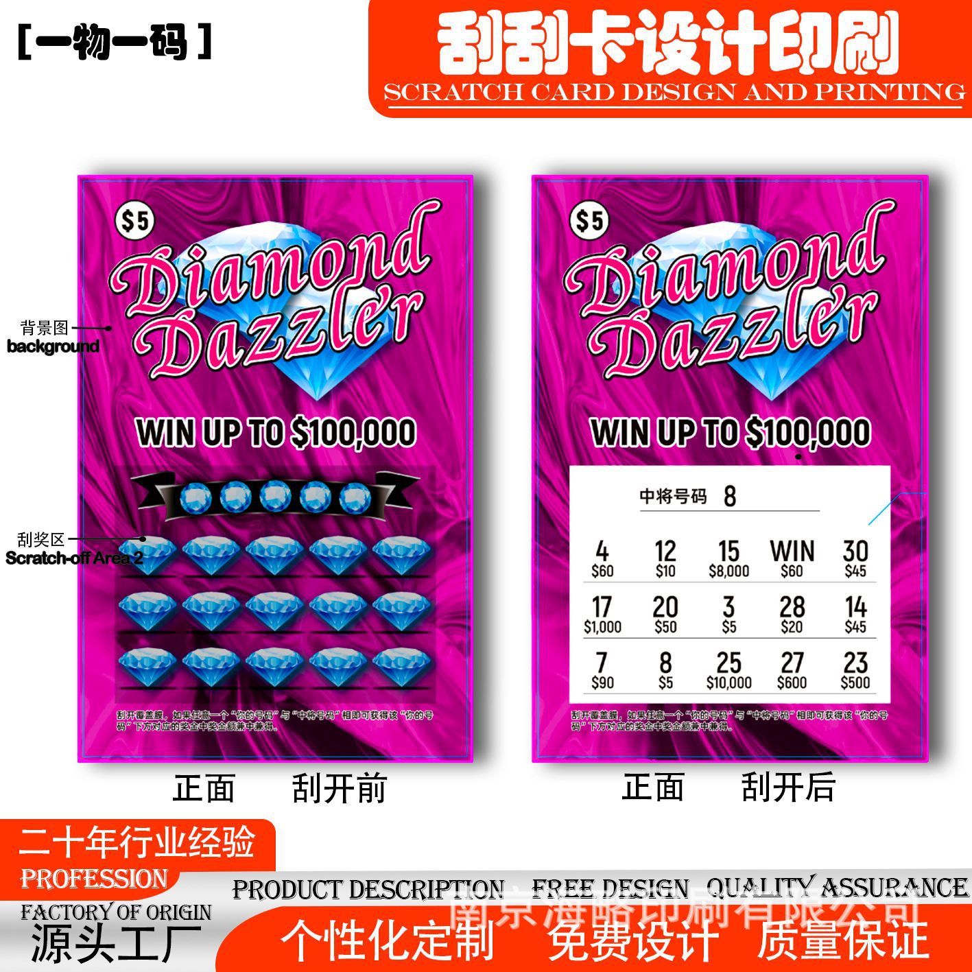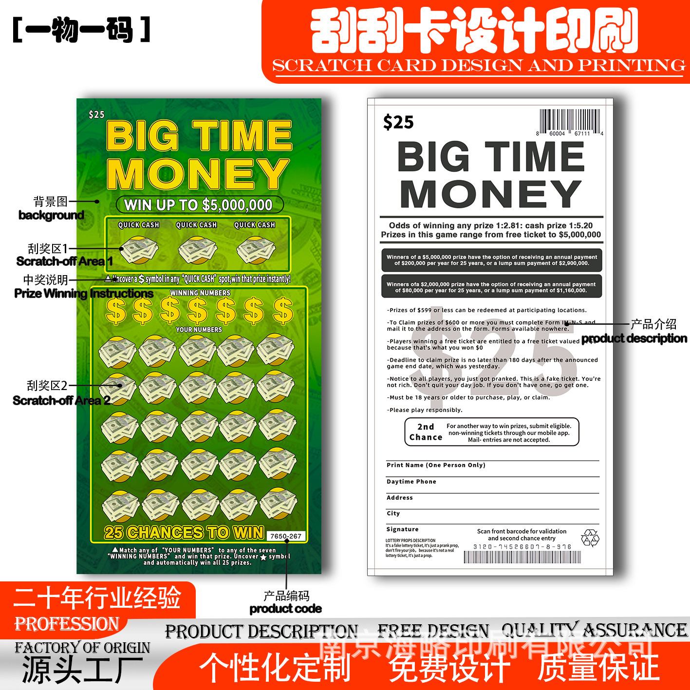 Завод-изготовитель изготавливает на заказ зарубежные лотерейные скретч-карты, эксклюзивно для трансграничной внешнеторговой лотереи, каждая карта — один код.