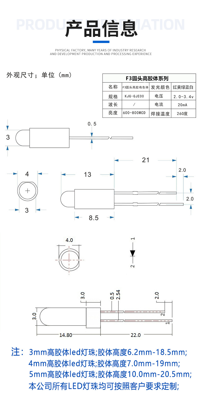 F3-F5mm противотуманные световые бусины с высокой коллоидной круглой головкой