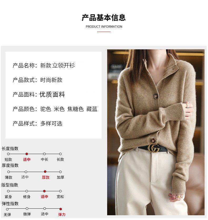 Женский вязаный кардиган 2025 года в стиле ретро, однотонный, с воротником-стойкой, повседневный, универсальный, свободный крой, весна-осень