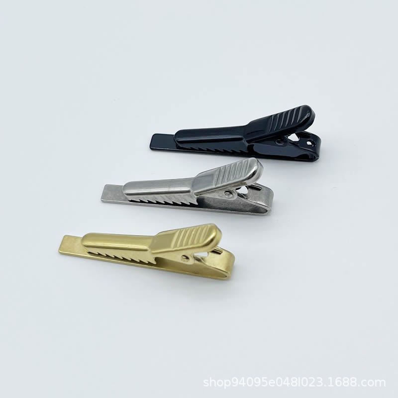 Зажим для галстука из нержавеющей стали Amazon горячая Распродажа простая формальная одежда золотой серебряный металлический зажим для галстука Мужская и женская Защитная булавка