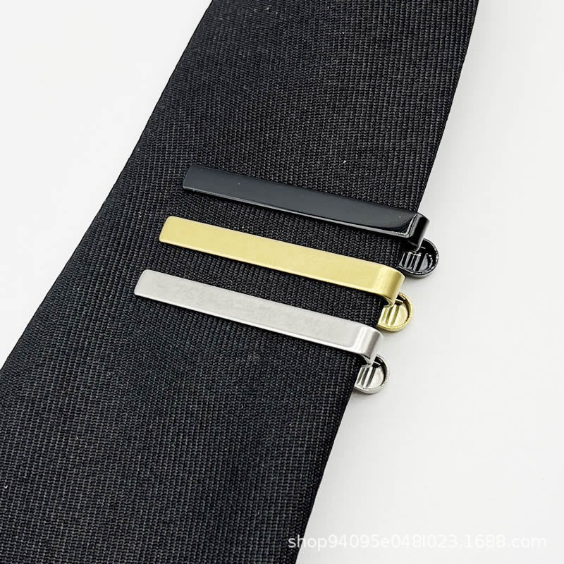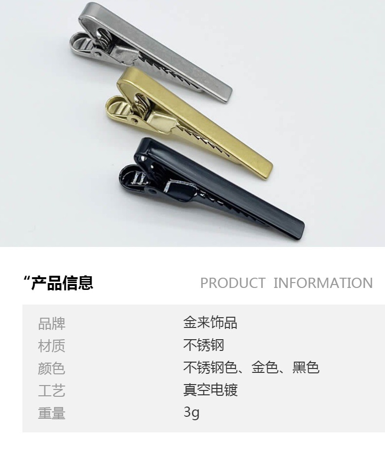 不锈钢领带夹 亚马逊热卖款简约正装金银色金属领夹男女保安别针